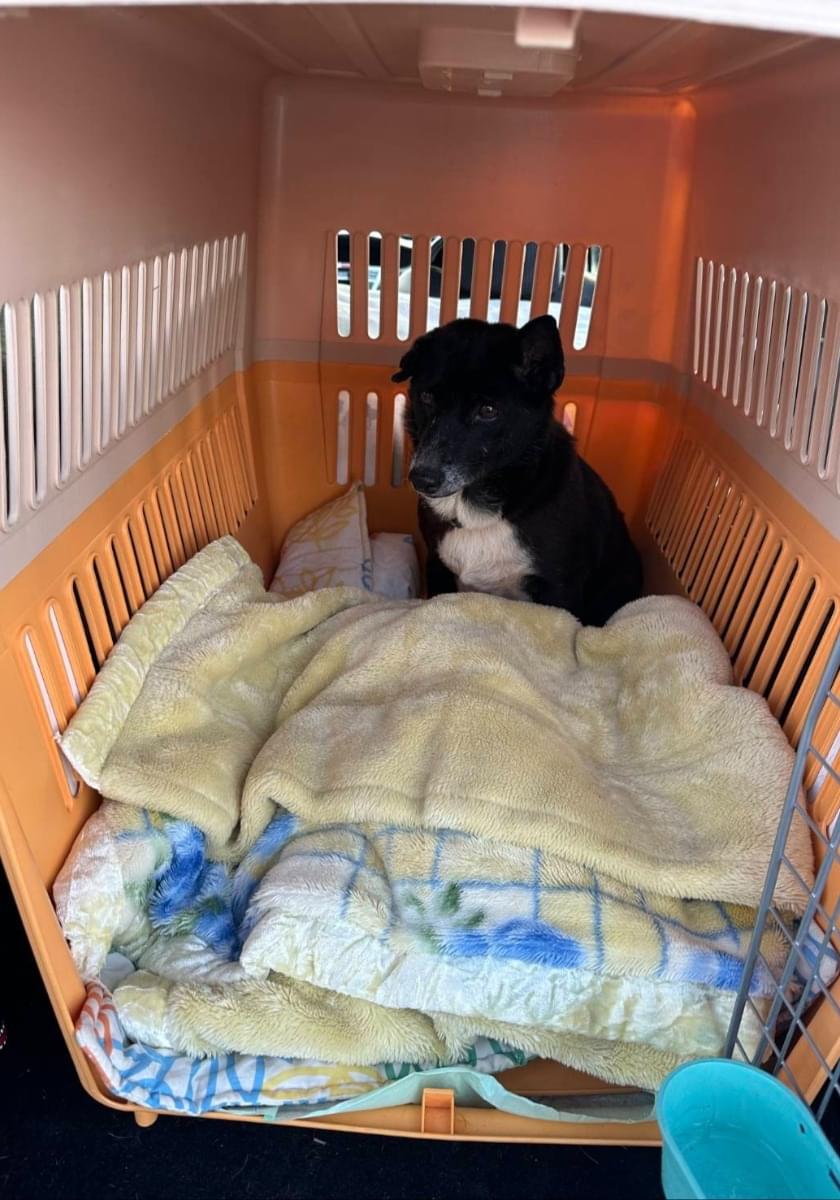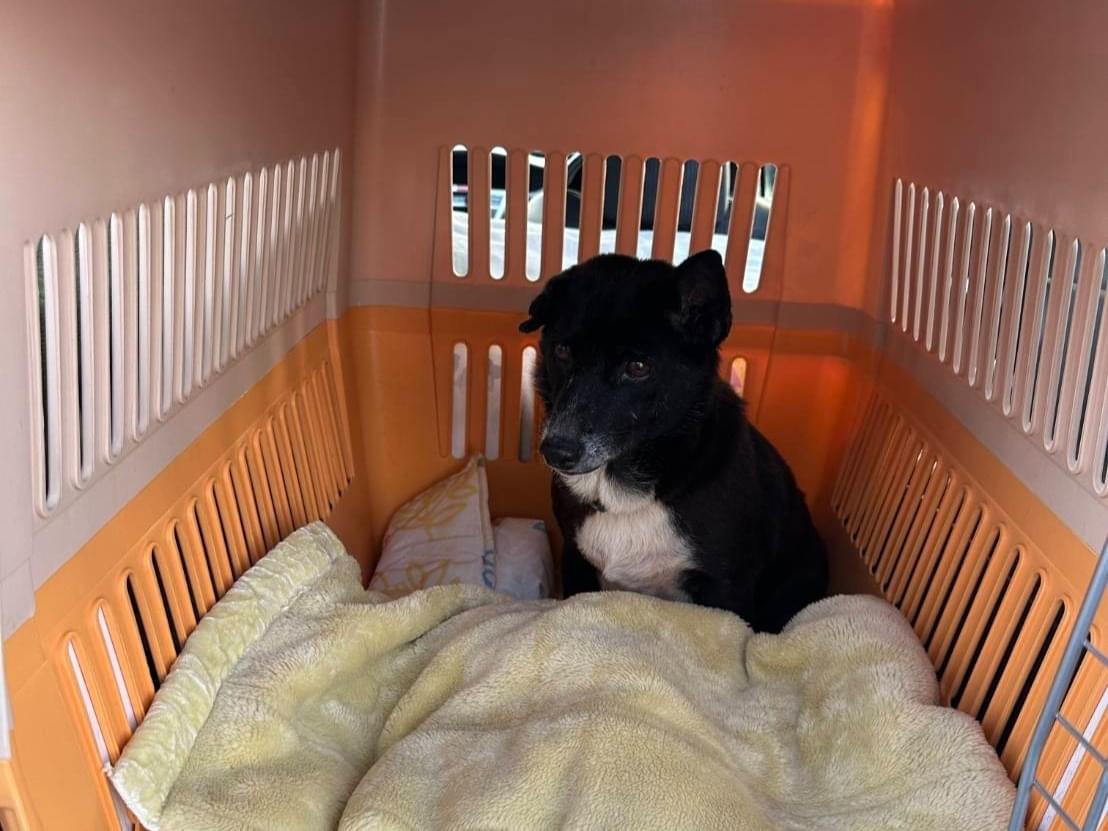 片耳がたれてる全体的に黒い雑種犬