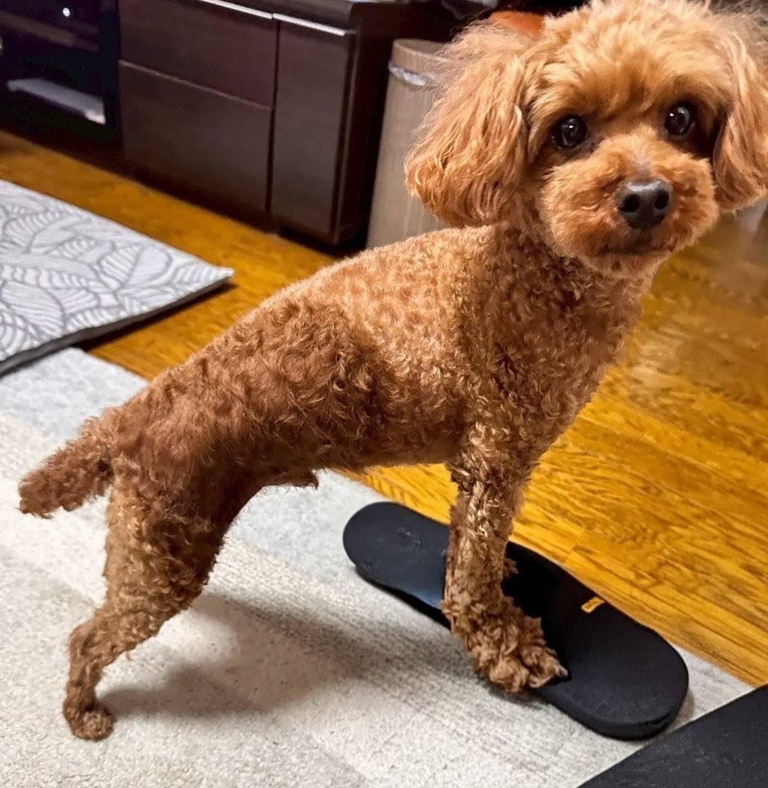 トイプードル。首輪が抜けて逃げてしまいました。
