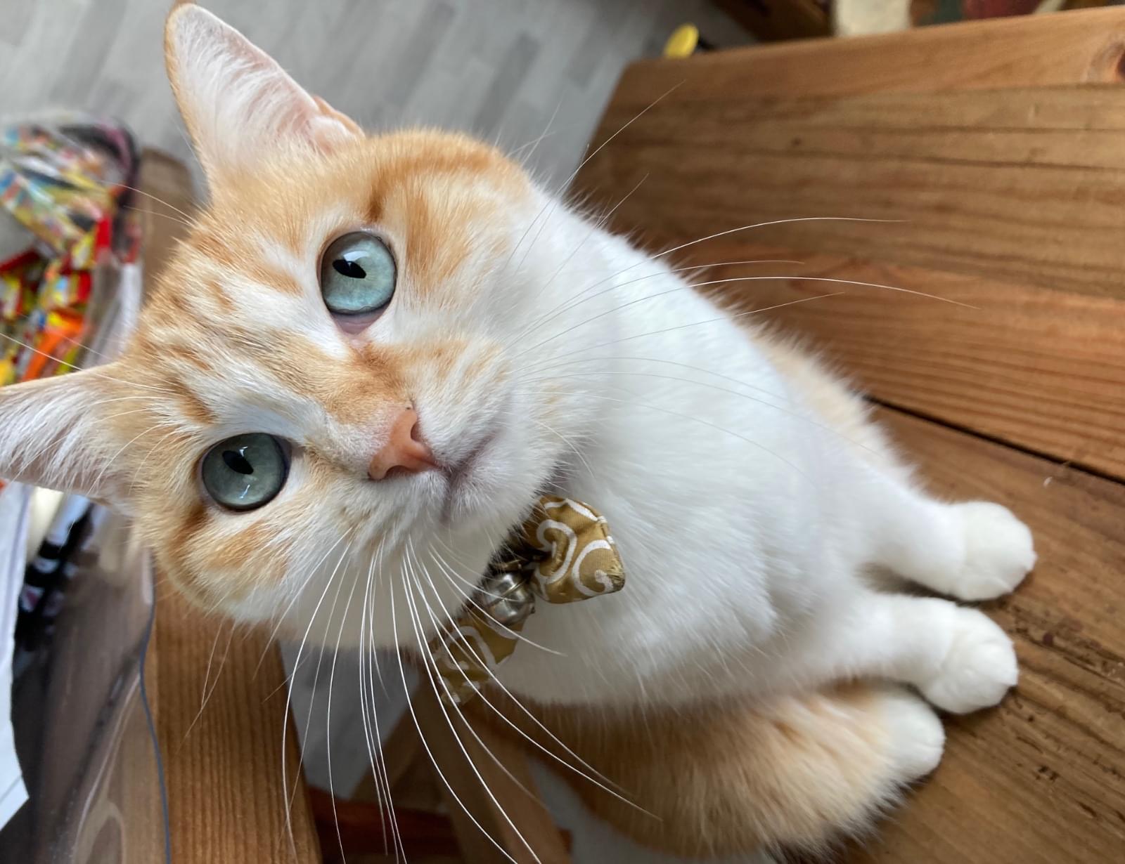 茶白のモフモフ、青い目の小柄猫 探してます