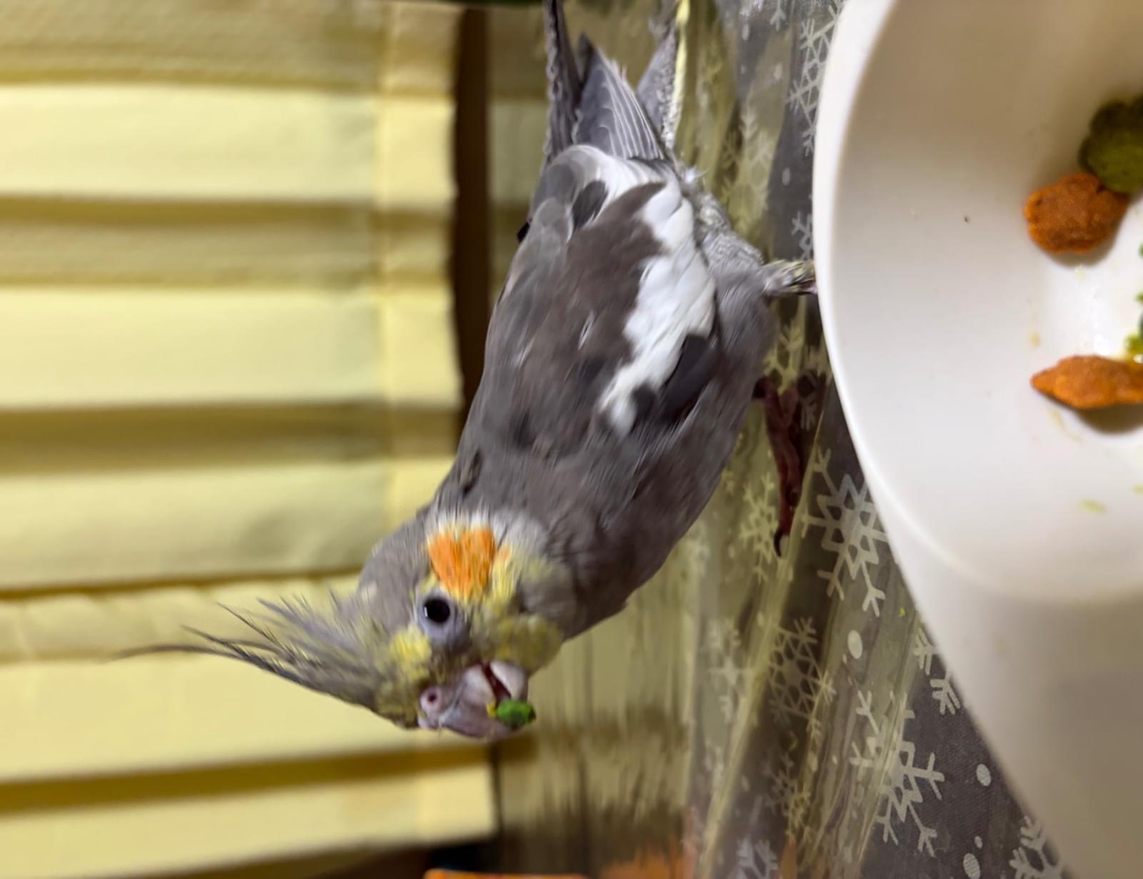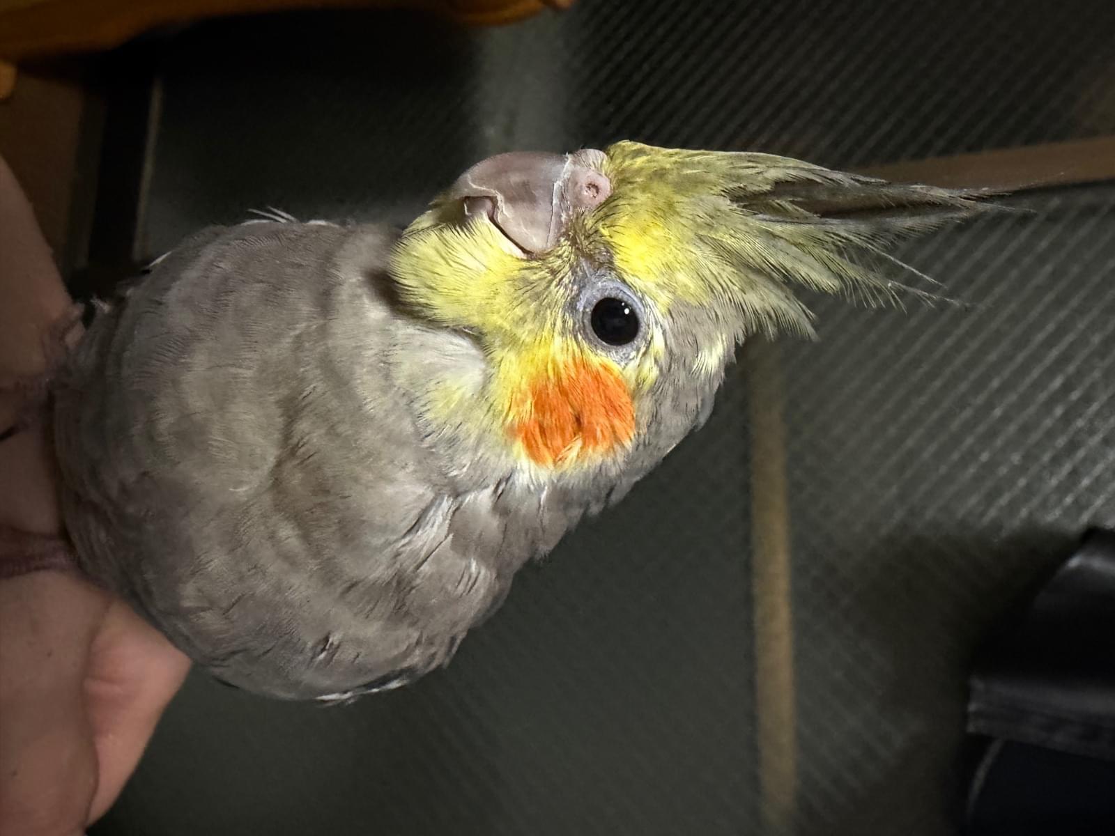 見た目はオカメインコで、(ここに色や特徴:グレーでほっぺがオレンジ、爪が一本ない)です。近くの木の上や電線、ベランダなどに止まっている可能性があります。