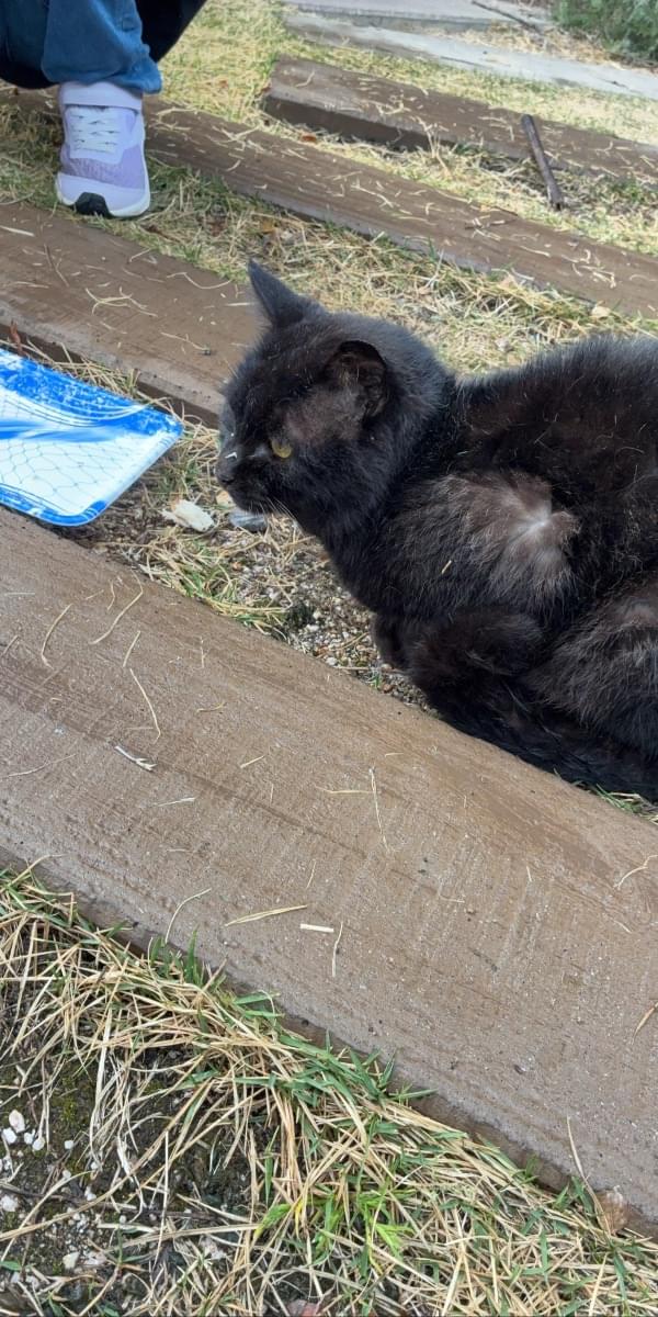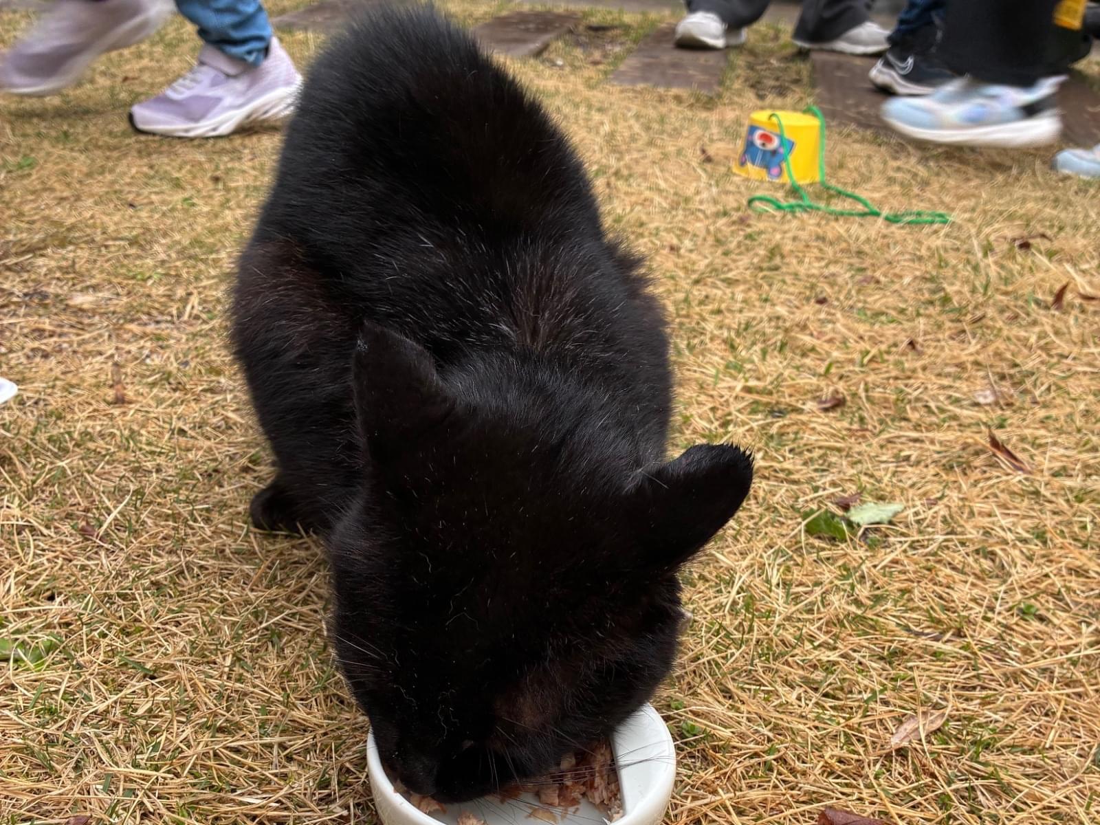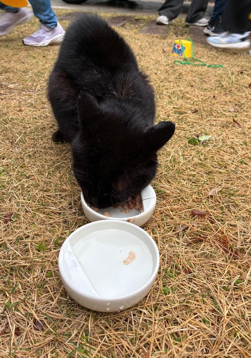 子供達が騒がしく遊んでいるところにスーッときて、どうやらお腹が空いているのかごはんをあげるとすごい勢いで食べました。発見から2時間経っていますが我が家の周りにたたずんでおります。