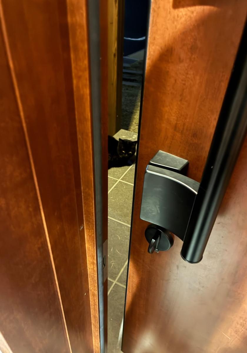 黒猫ですが、左側がなんとなく茶色っぽい気がします尻尾は長くもなく短くもなく中くらいで太めな尻尾です。