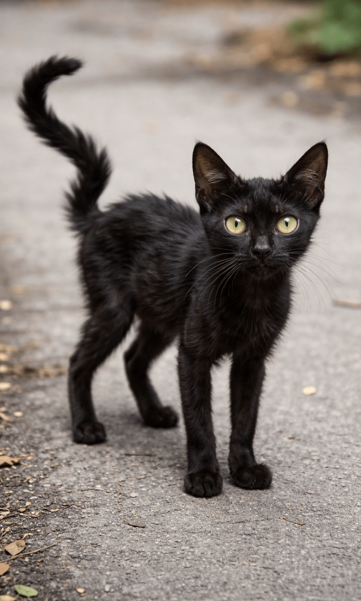 真っ黒の短毛 ミックス 尻尾が曲がってる