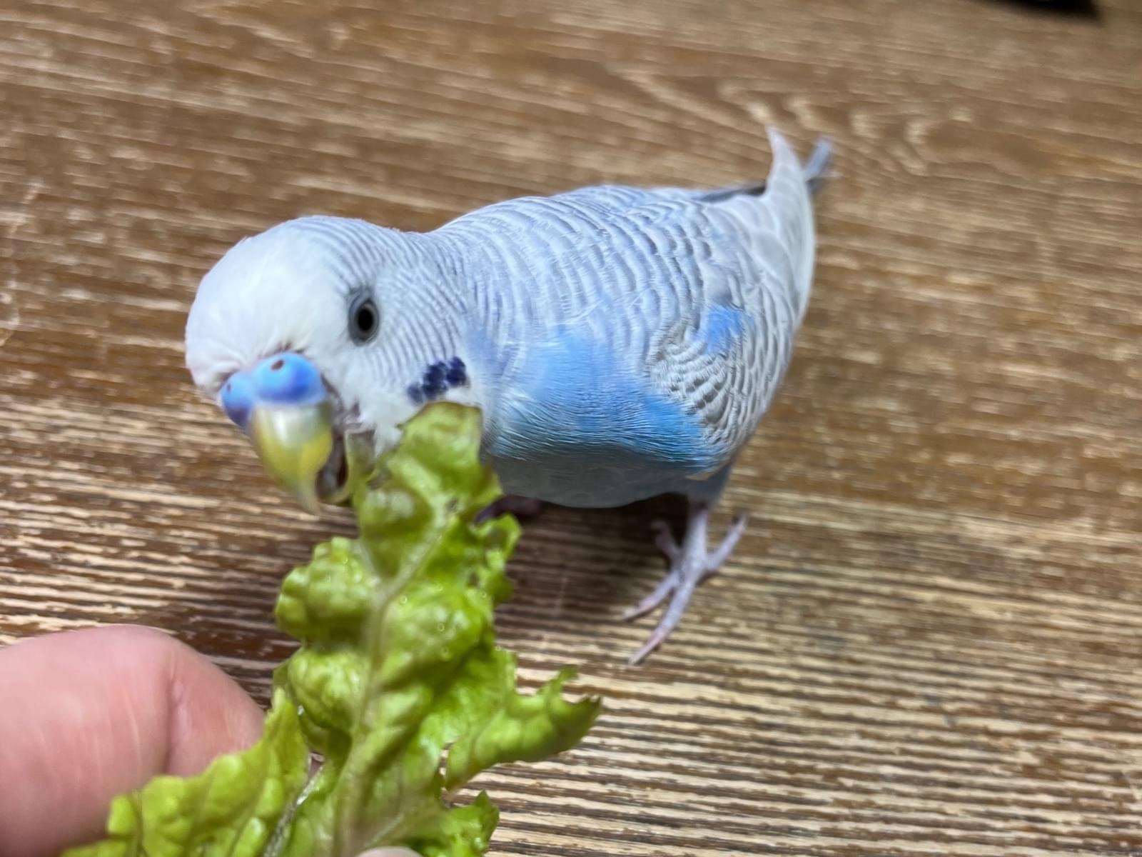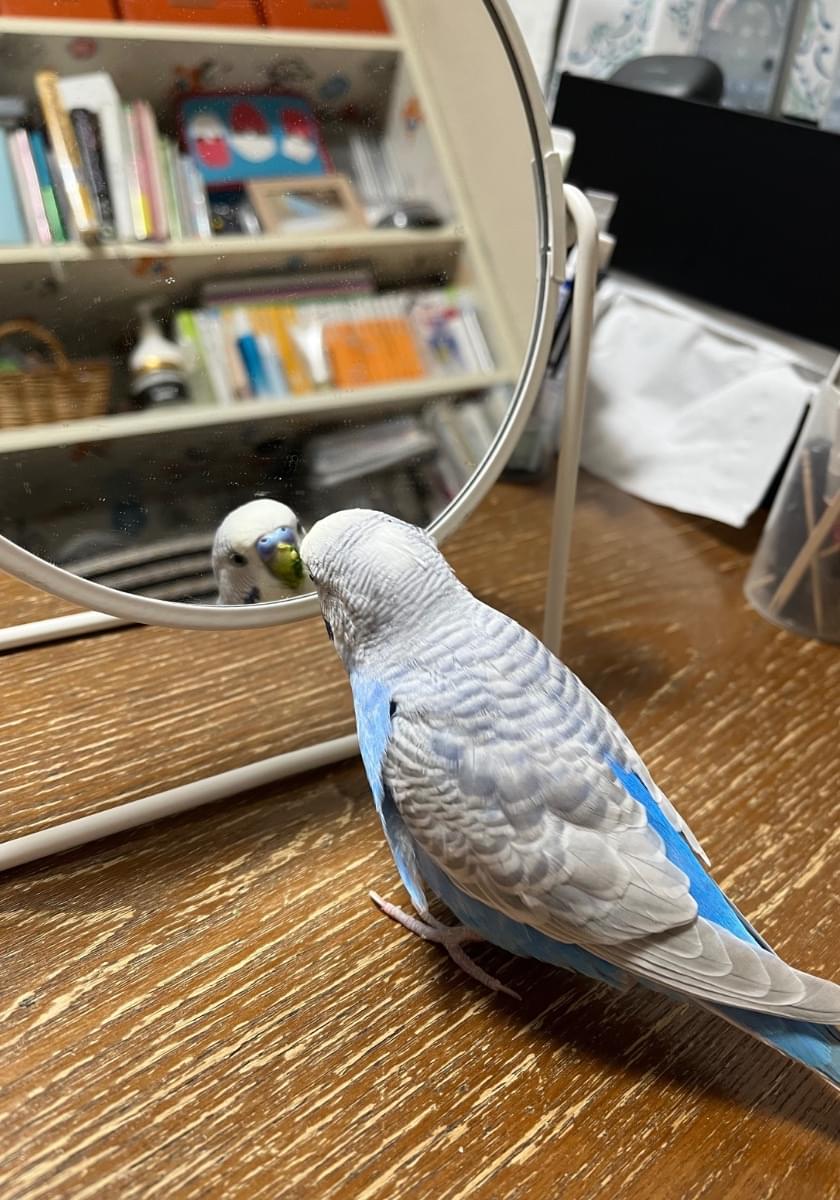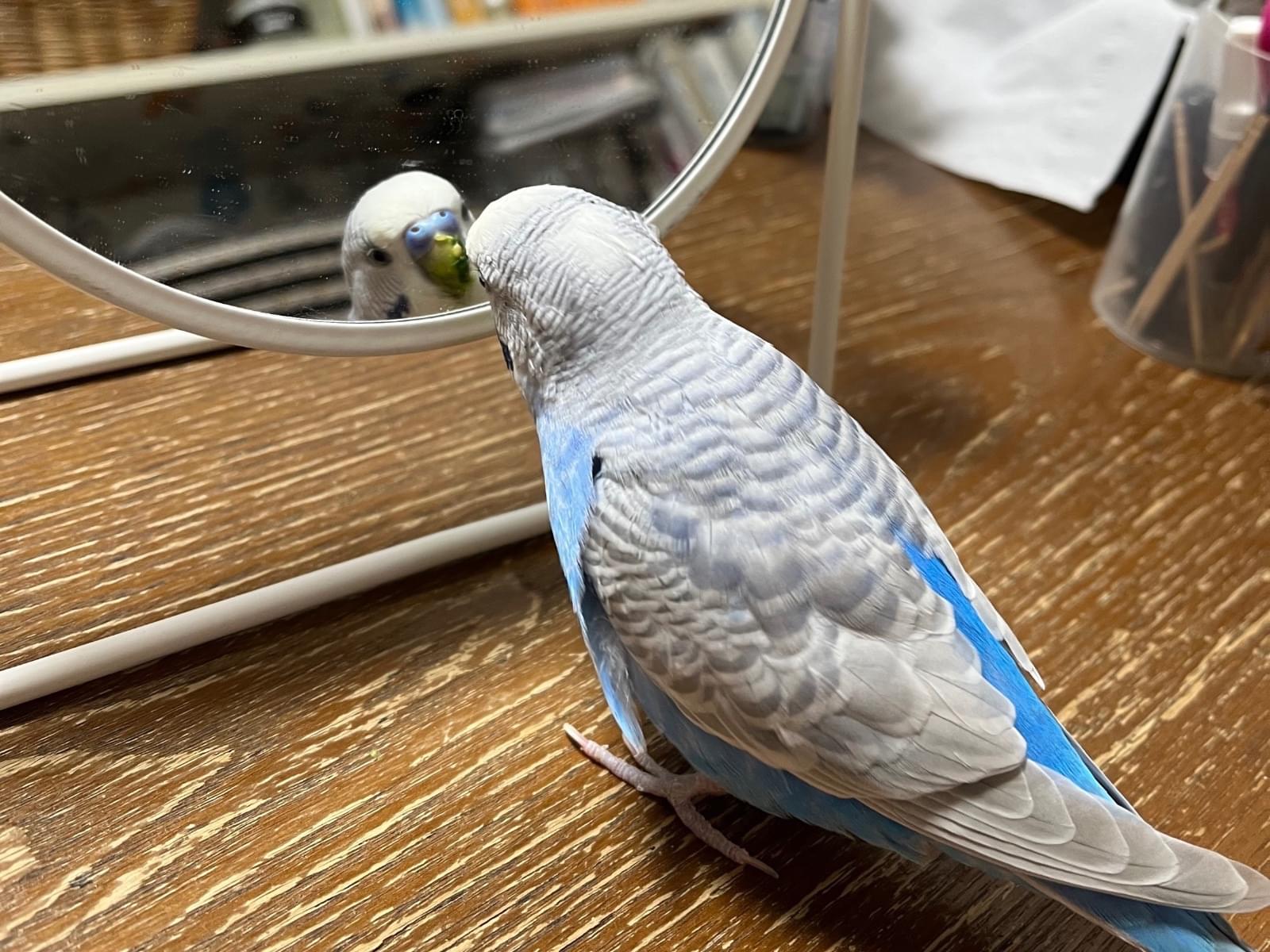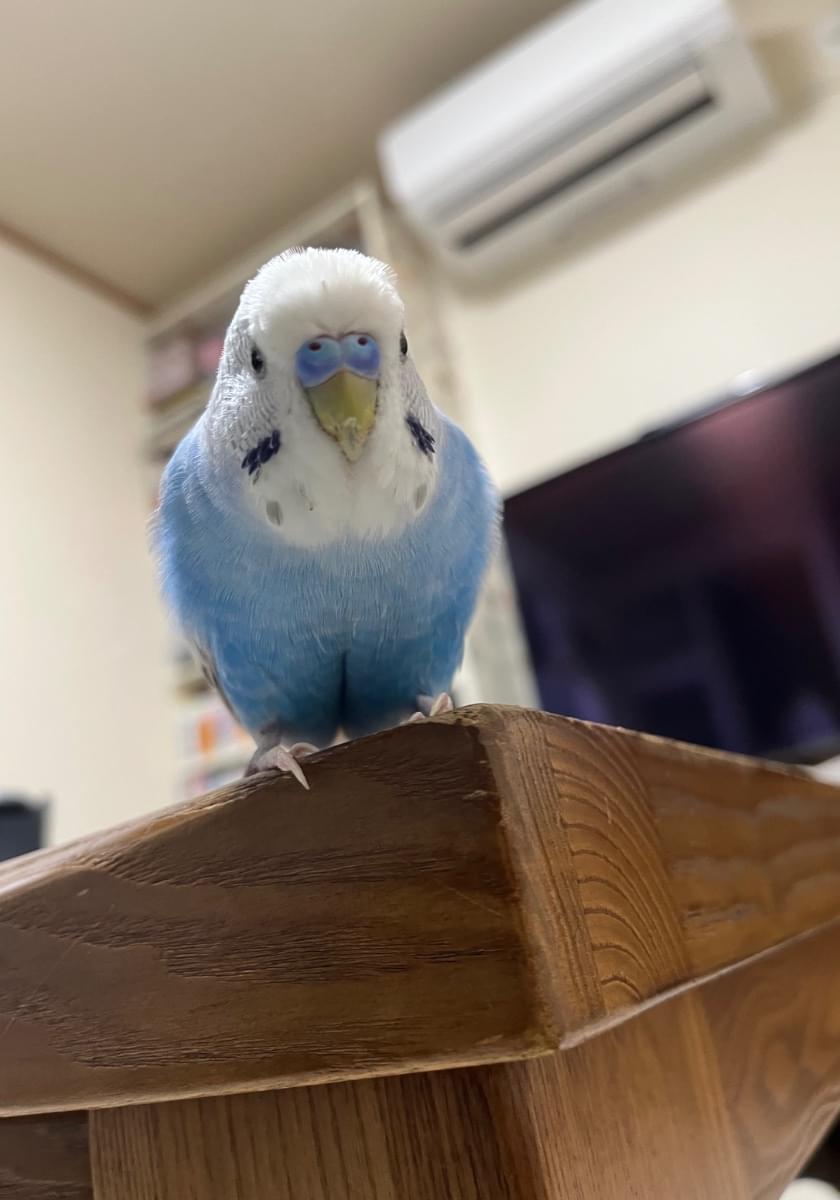 鼻が鮮やかな青色で、後頭部の一部の毛だけ白いです。