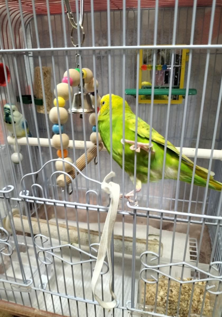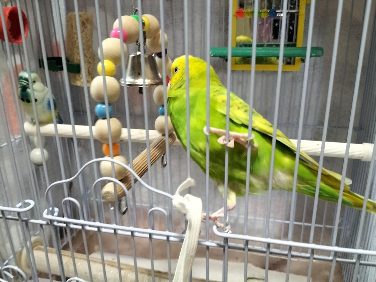 毛の色が黄色と緑色のインコを探しています。