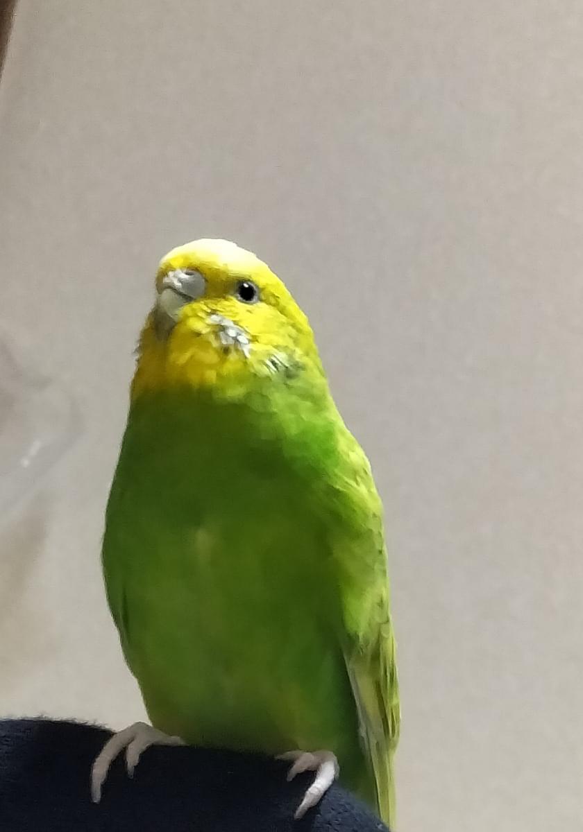 「シッコした。」「ピーちゃんお利口さん。」とか話します。鏡が好きです。携帯電話で写真を撮ろうとすると、直ぐに飛んできて撮らせてくれません。燕麦が大好きです。肩に乗って耳や目尻口元などを甘噛してきます。頭の上にもよく乗って来ます。窓に近づけて日光浴させようとしても、嫌がって部屋の奥に逃げていたくらいなので油断していました。