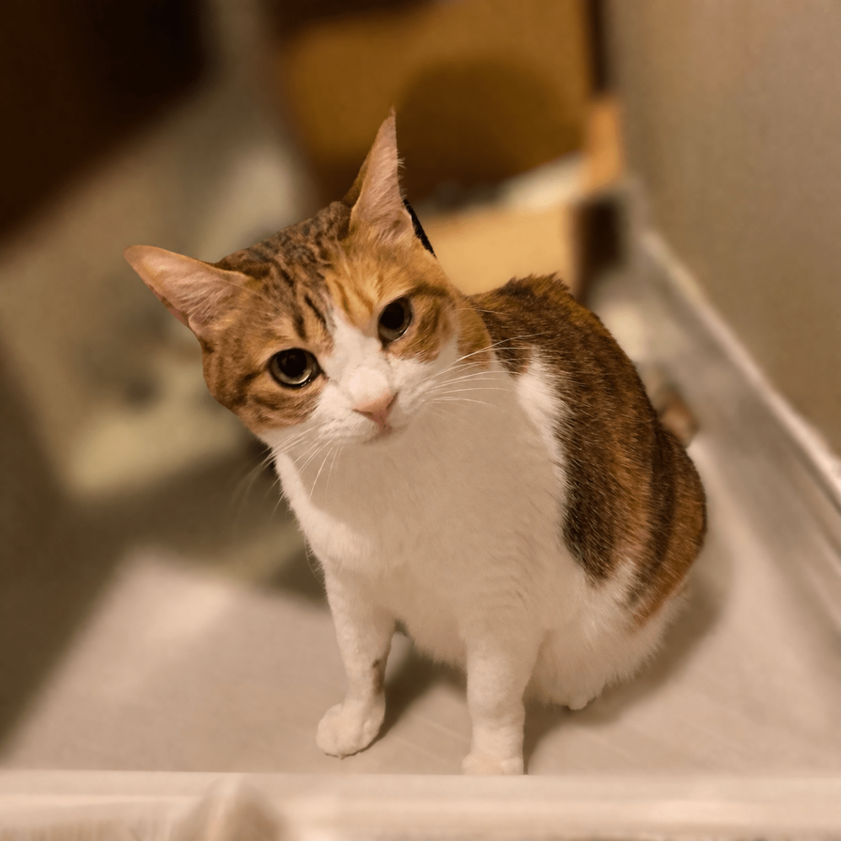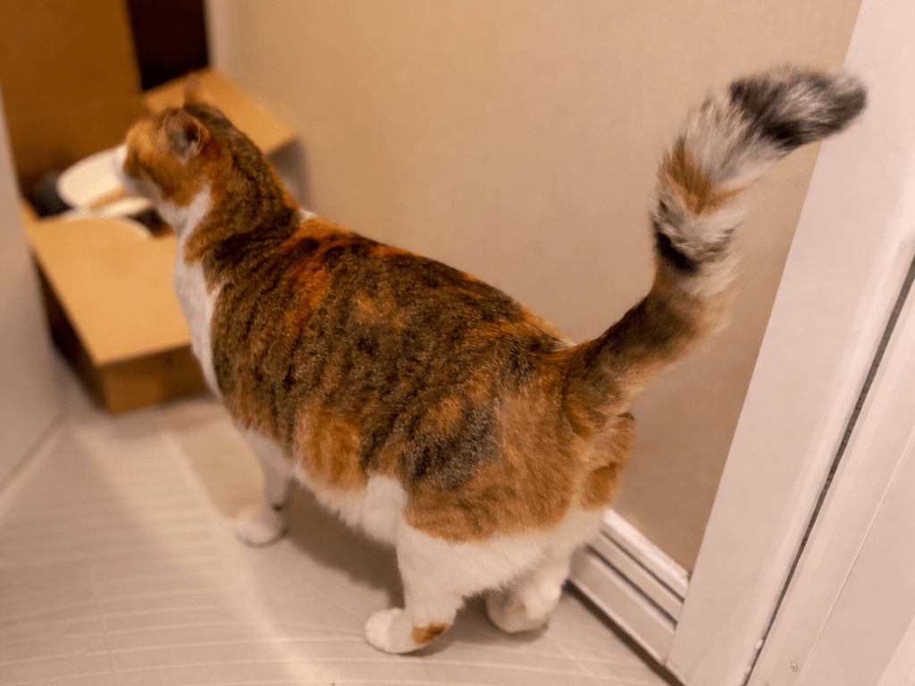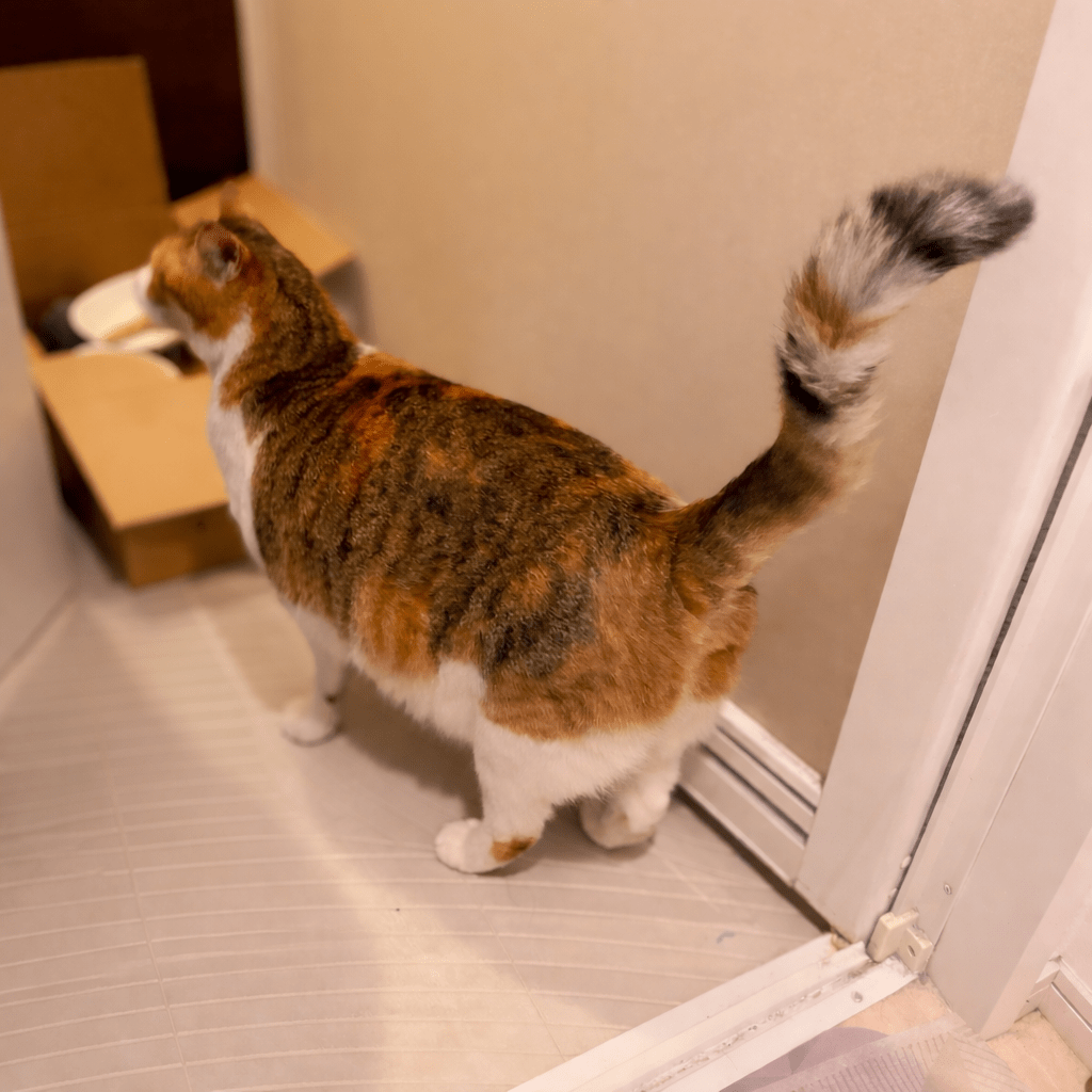 2026年4月3日(金)23:30頃、車道や住宅街を歩き回ってしきりに鳴いていました。翌日が雨にもかかわらず深夜に首輪なしで出歩いており、お腹が大きく息が荒かったため、保護しました。