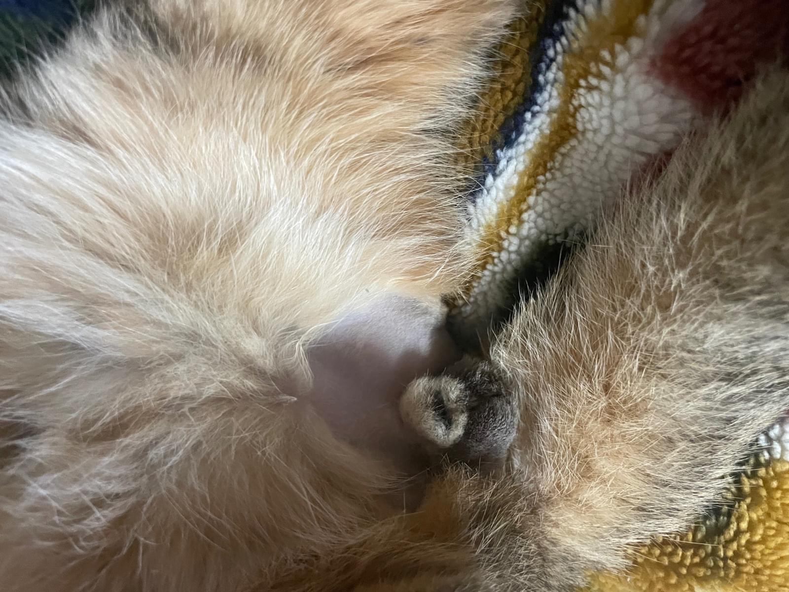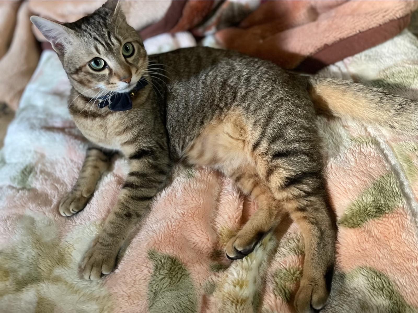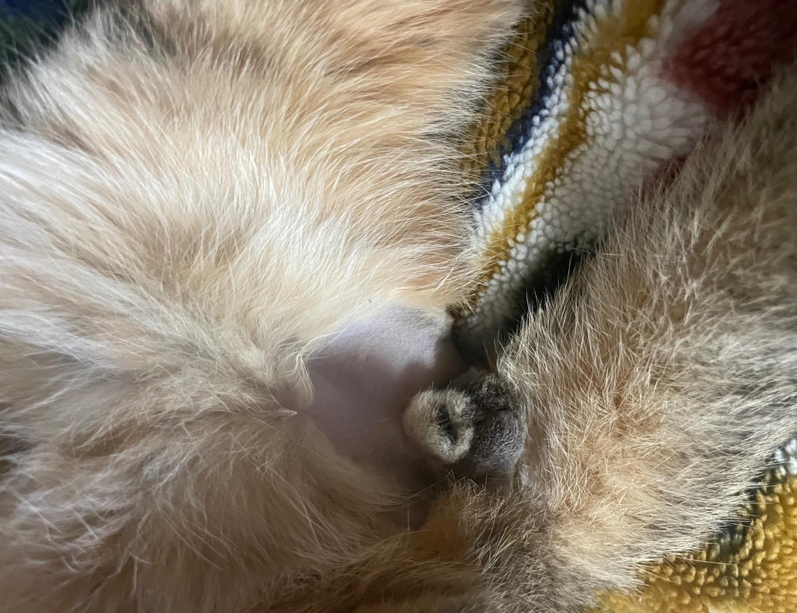 今年の2月頃に去勢手術をしたばかりなのでおしり周りの毛が刈り取られていてあまりはえていないです。