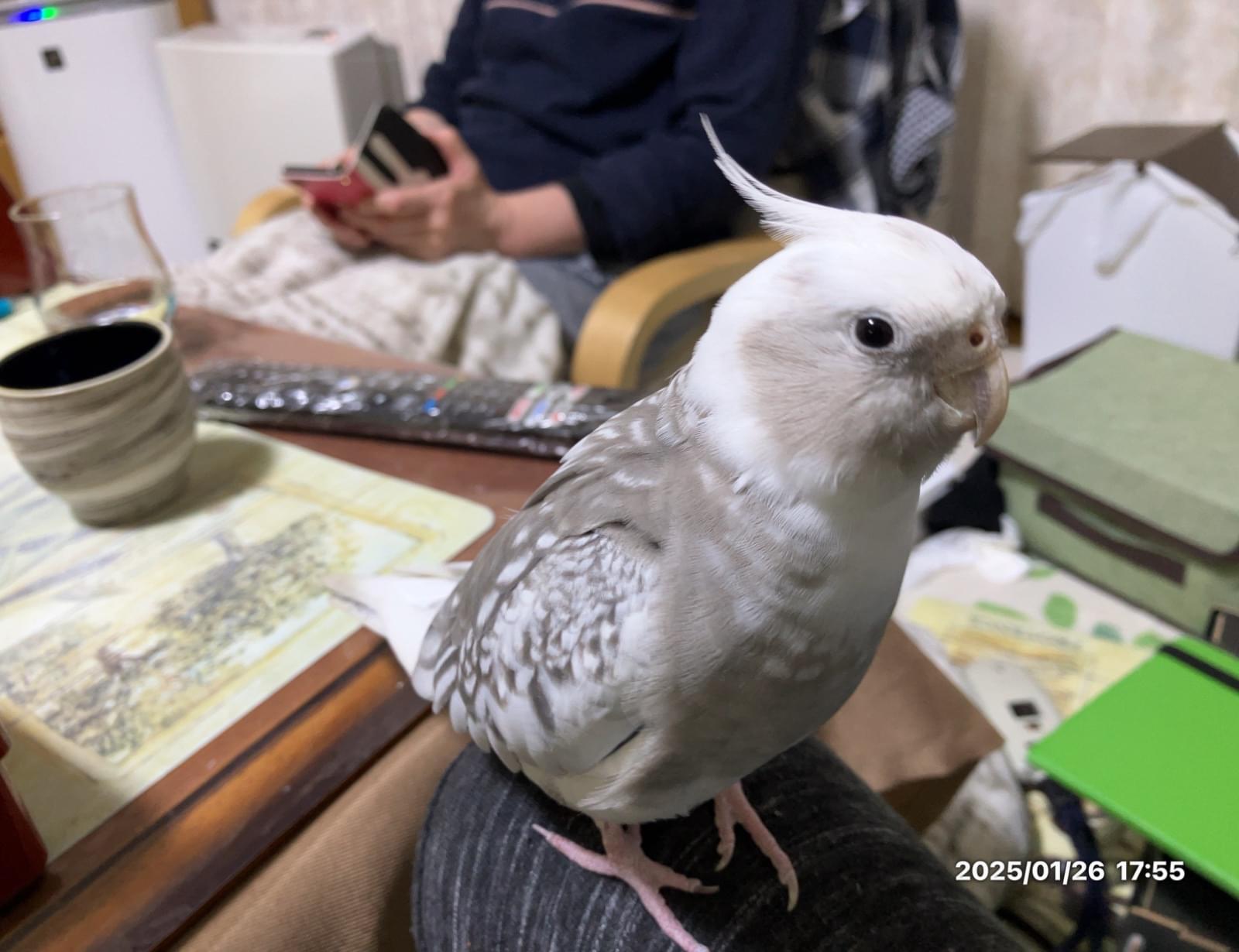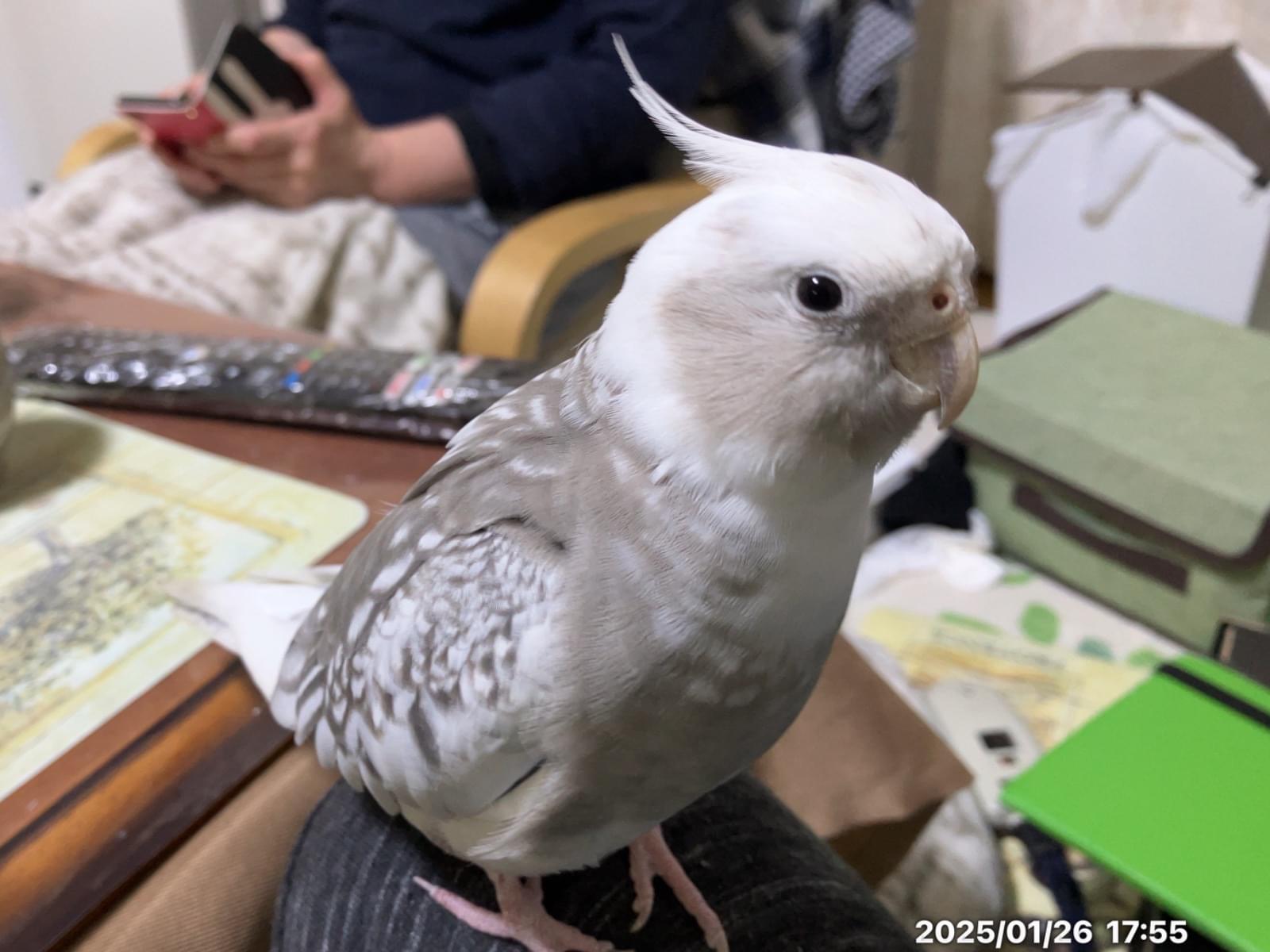 白いオカメインコを探しています。2026/4/6(月)正午くらいにベランダの扉を少し開けたら飛び出して行ってしまいました。ビビリ屋さんですが、人に懐いていて、人声に興味を持って肩に乗って来たりします。モンちゃんという呼び名に反応するかも知れません。もし見かけたら、教えて頂けると助かります。
