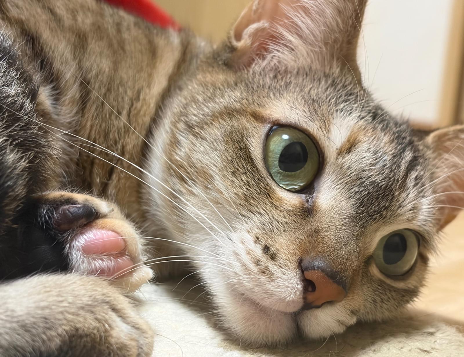 おでこの柄の色が左右で違います
