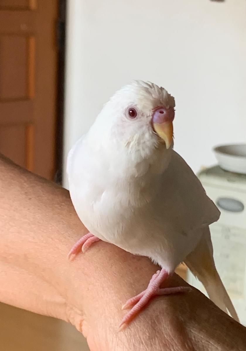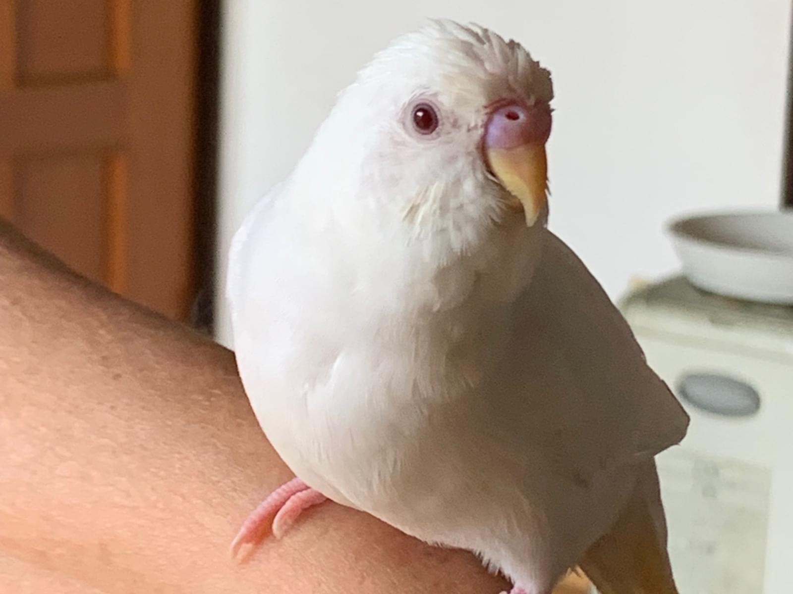 セキセイインコの真っ白です。よく喋り、自分の名前も『るんちゃん』と言えます。6日の薄暗くなった頃に、母の不注意で泉野小学校辺りへ飛んで行ってしまいました。人懐っこいので誰かに保護して頂いてるのを祈るばかりです。見かけたり保護して頂いた方、ご連絡下さい。宜しくお願いします。