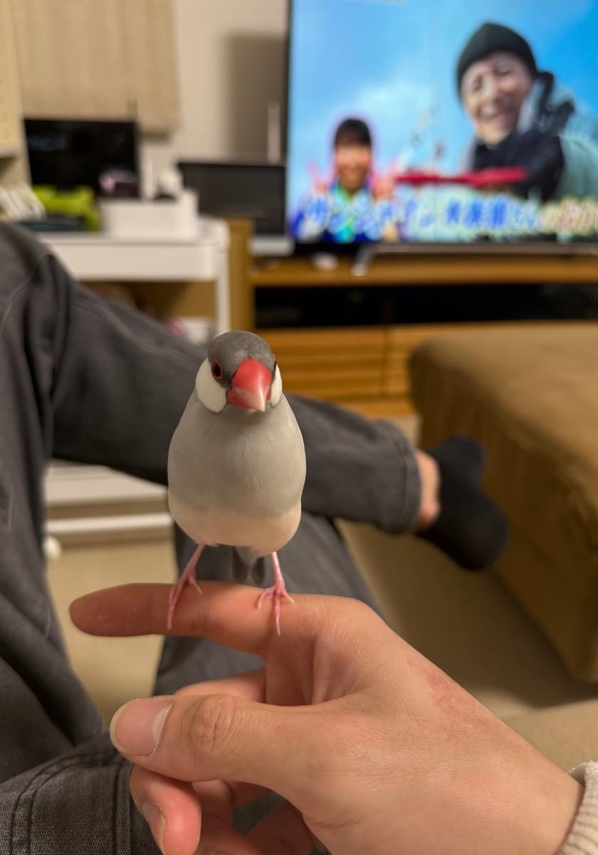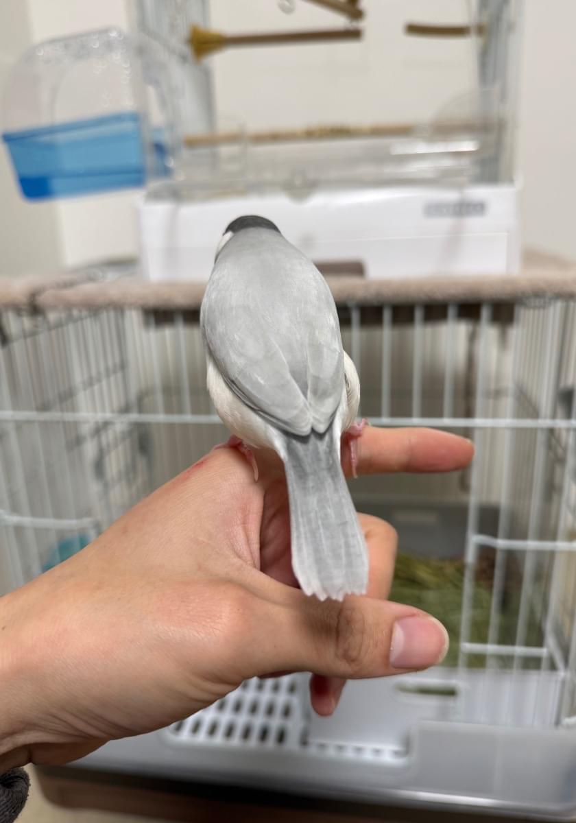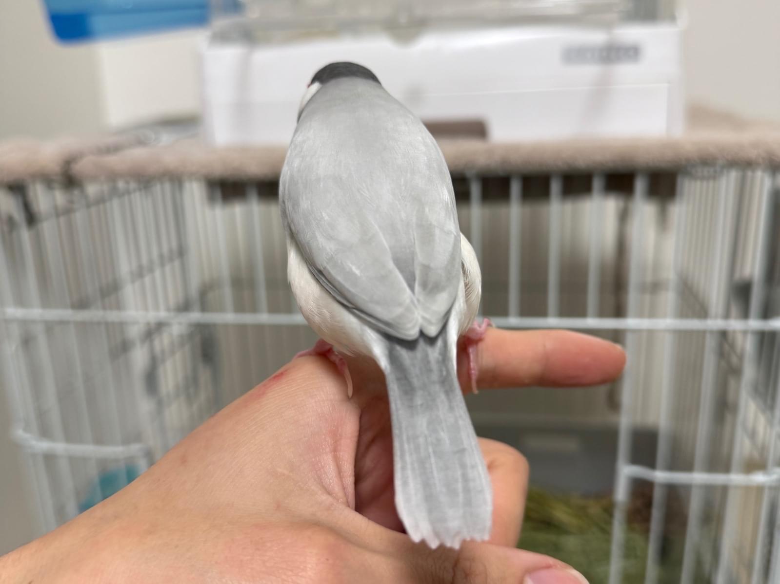 シルバーの文鳥で少し太っているのでふっくらしています。