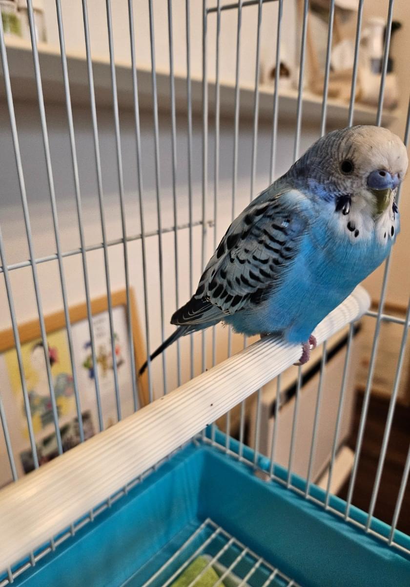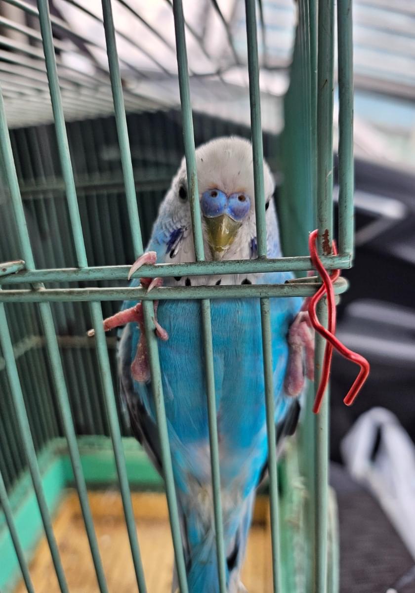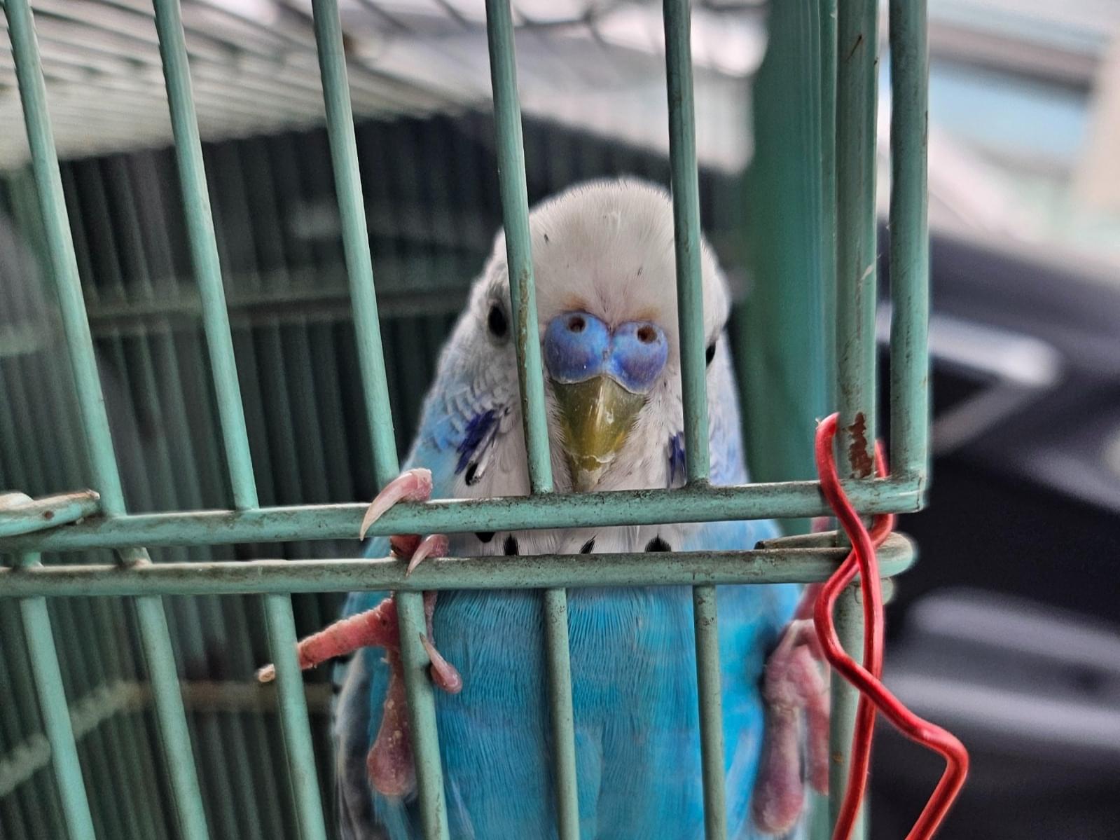 青いセキセイインコを保護しています