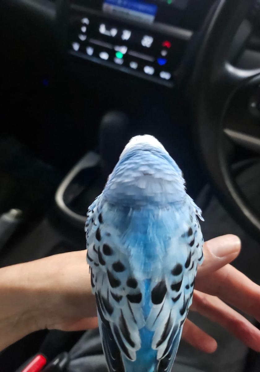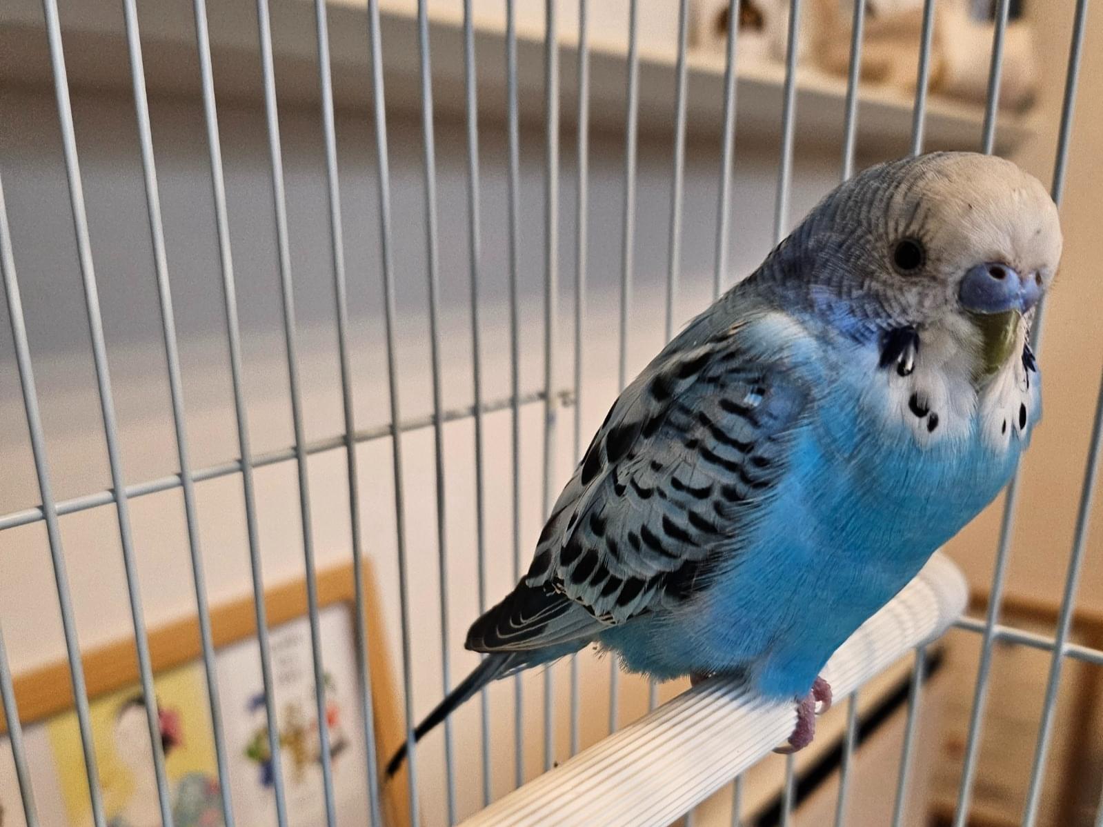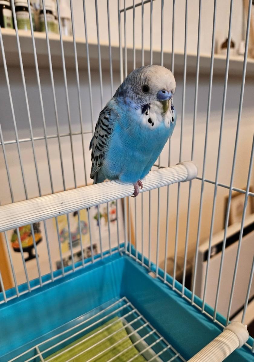 青いセキセイインコを保護しています