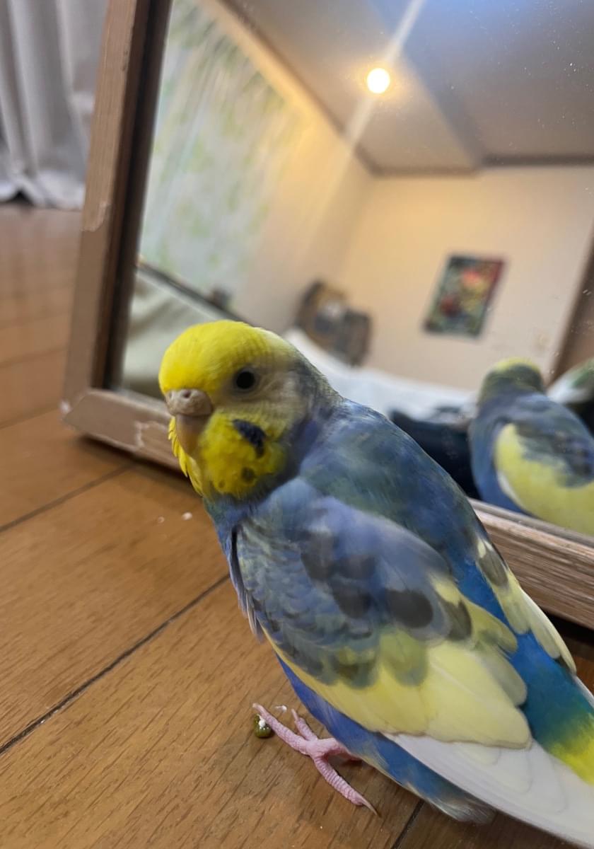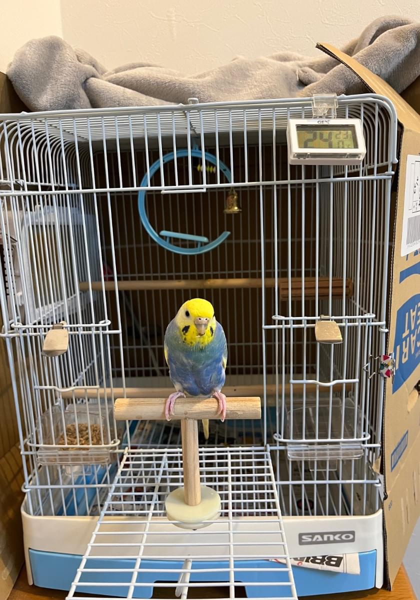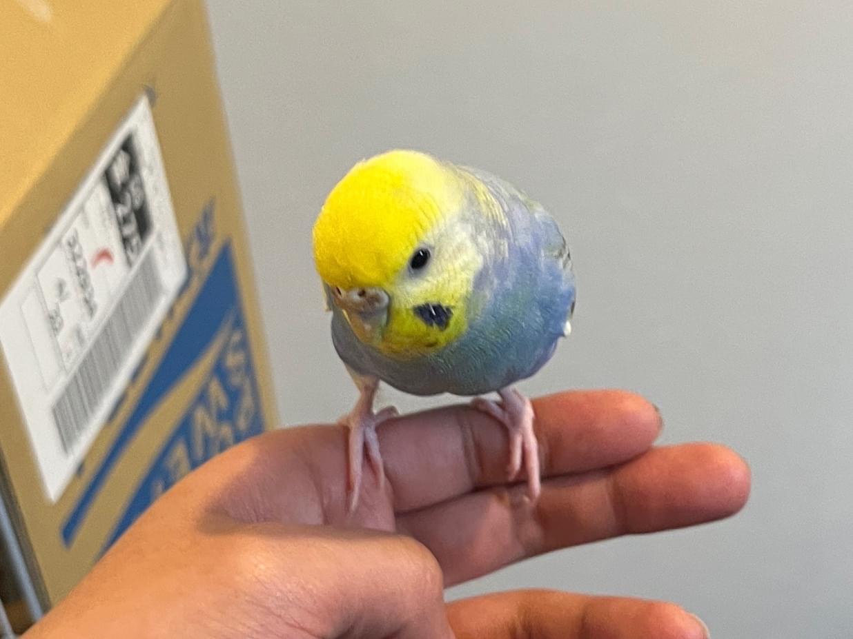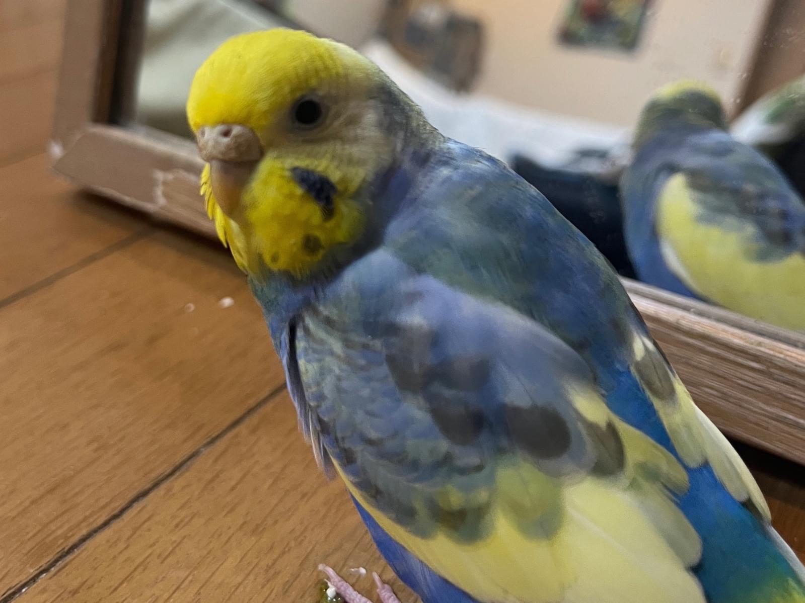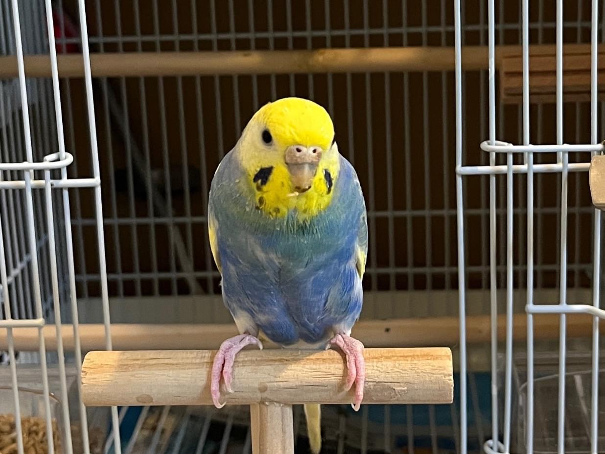 頭が黄色、体が青いセキセイインコを探しています