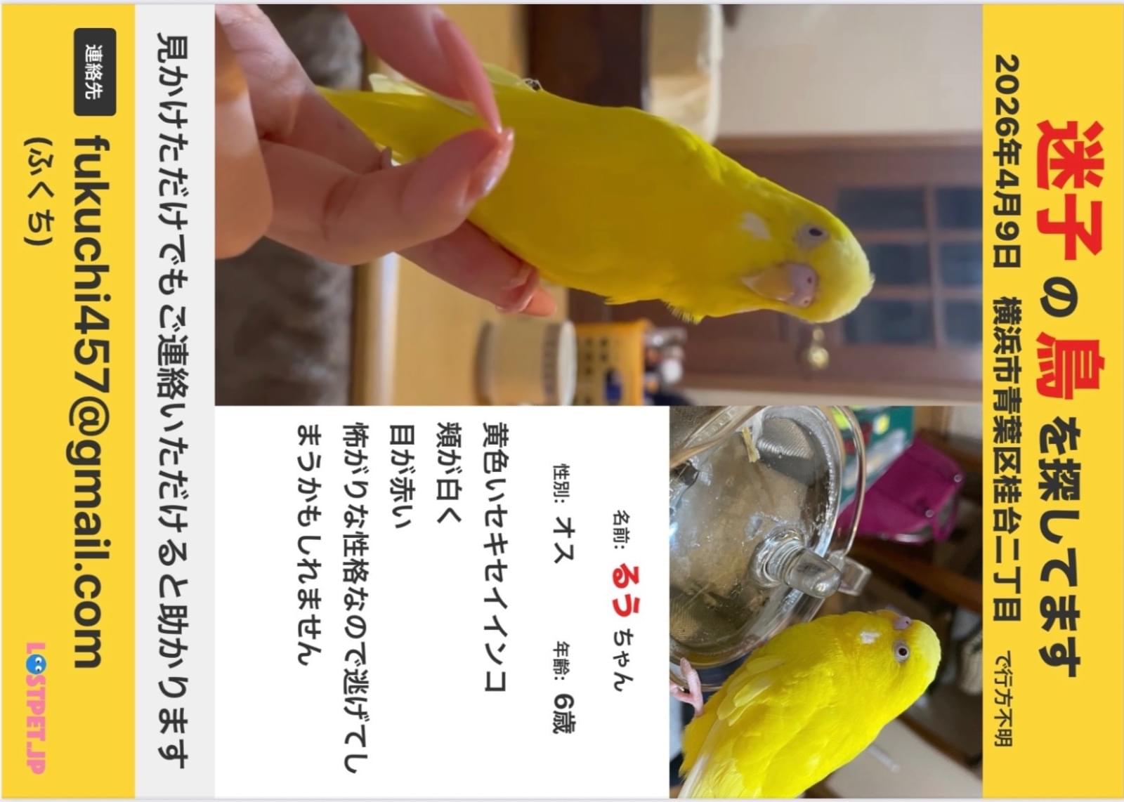 見かけただけでもメールやこちらのコメントに一言いただければと思います。