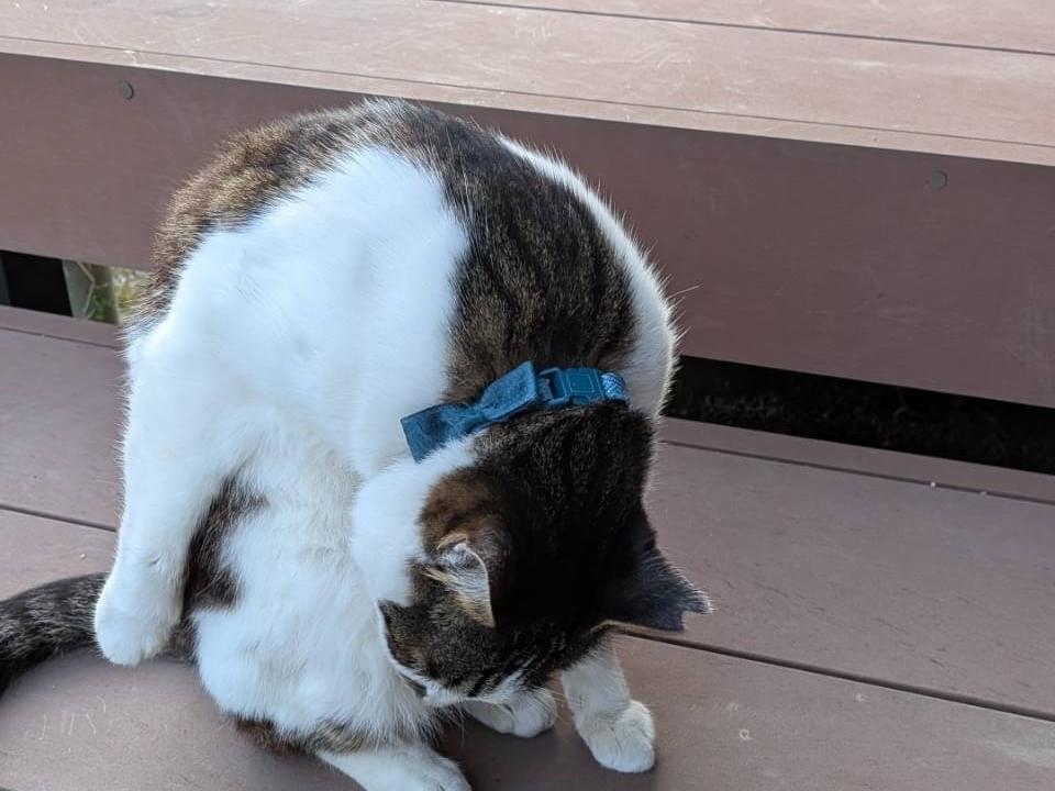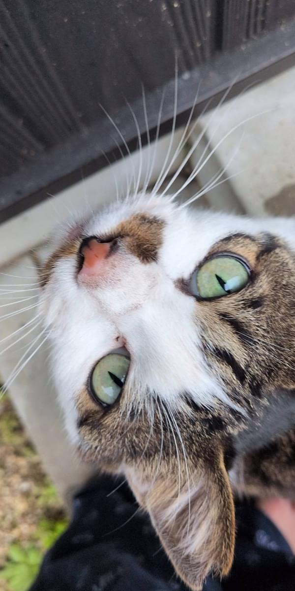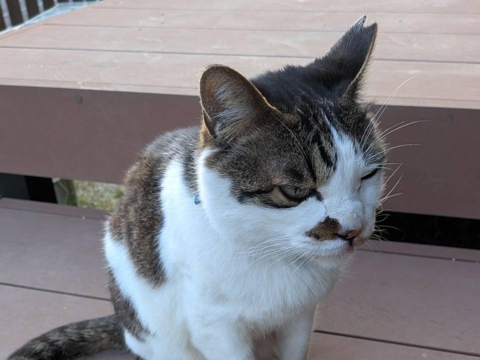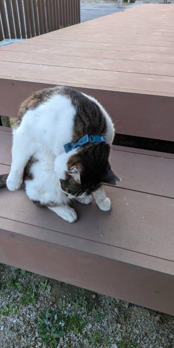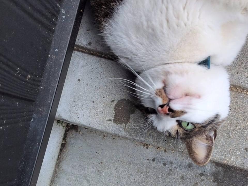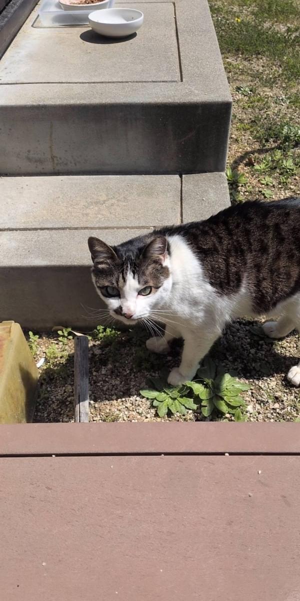 3月の下旬から庭に遊びに来ていました。帰る様子がなく、毎日寂しそうに鳴いていて、風邪をひいたようなので一旦保護しています。青い首輪、左耳カットあり、とても人懐こい女の子です。自分から家に上がってきました。家猫さんだと思います。