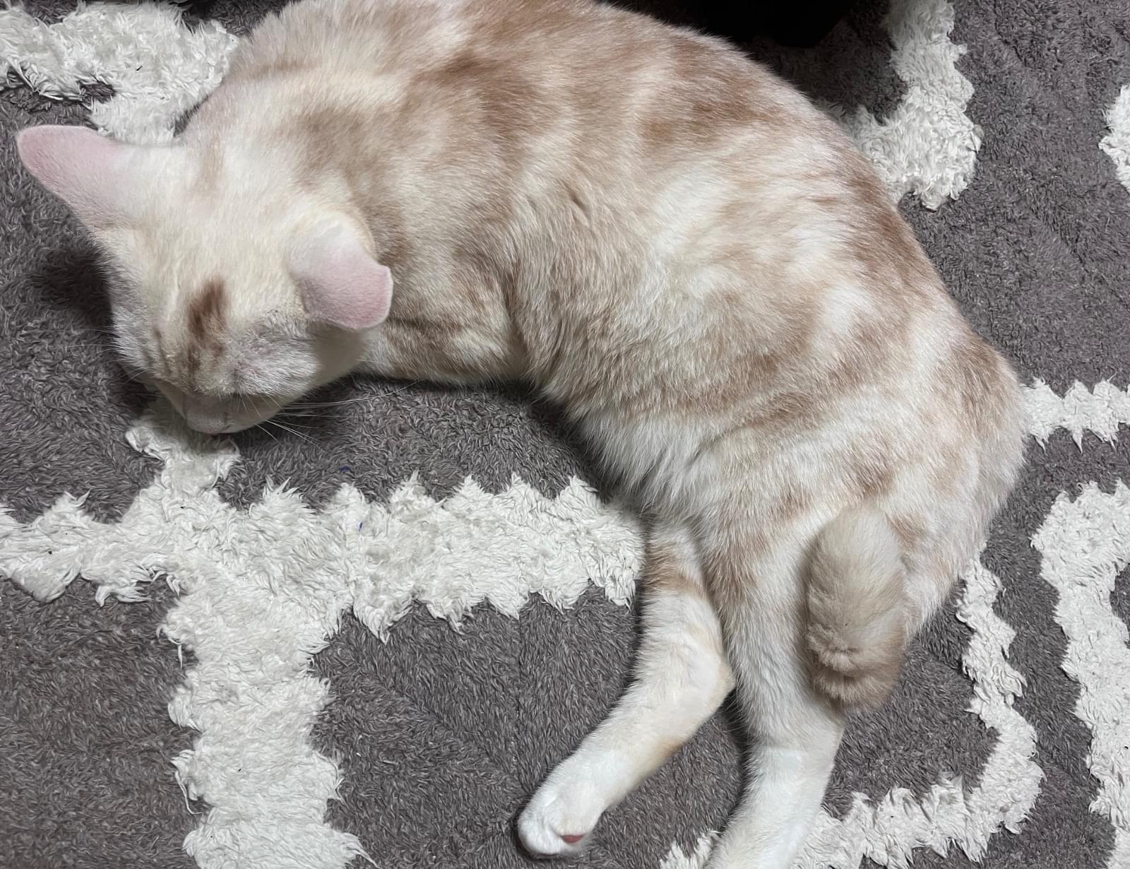 尻尾を触ると先端がちょこっと骨がまがってます。
