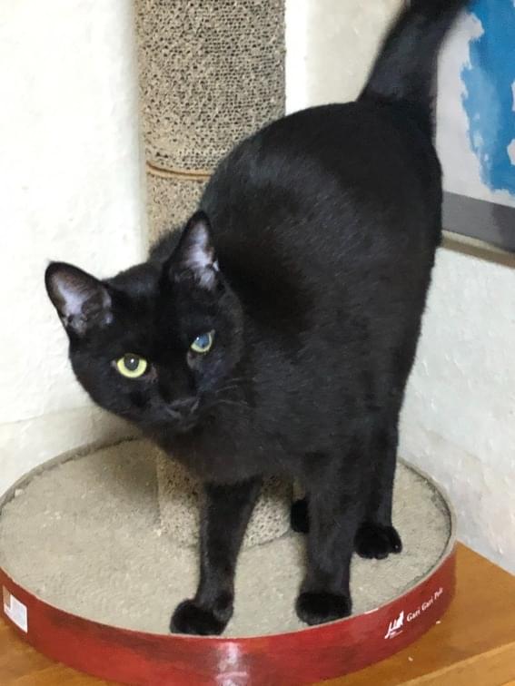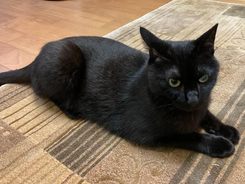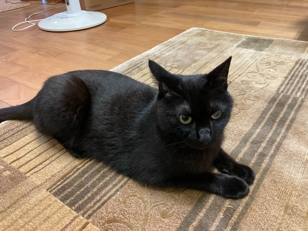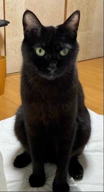 毛色:黒一色 尻尾:細く長い。 体型:痩せ型 4㎏弱 眼:左目が少し白濁していて、失明している。 耳:桜カットではない。左耳がすこーし切れている。 首輪はしていません。 性格:人慣れしてる、人懐っこい。他猫は嫌いで全く近寄らない 餌:事故の後遺症で、普段は特定のウェットフードしか食べません。ドライフードには見向きもしない。水もほとんど飲みません。