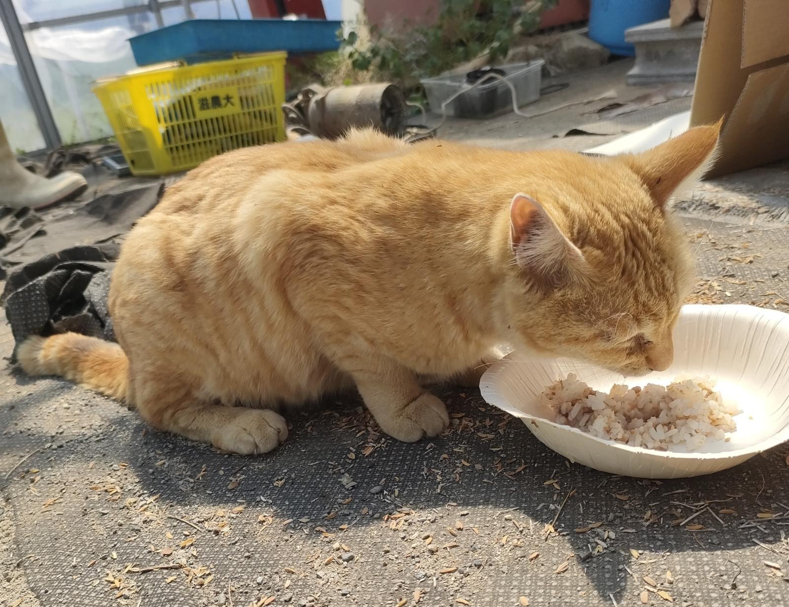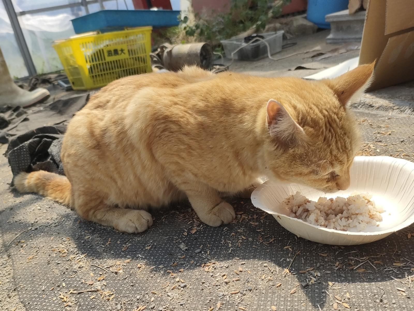 保護時は目やにがひどく、食欲がありませんでした。痩せ気味です。今は体調は回復しているようで、よく食べています。