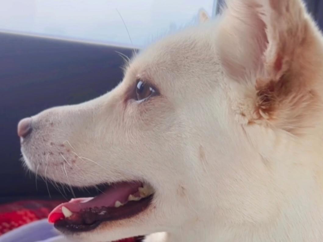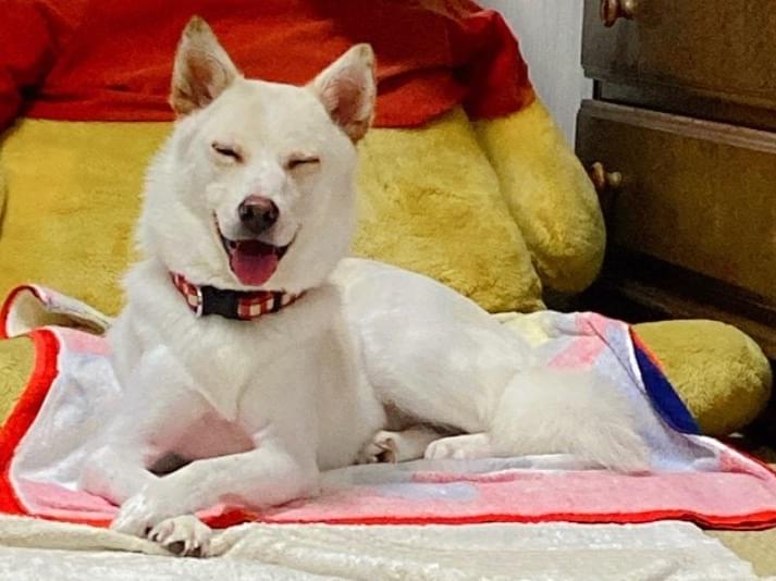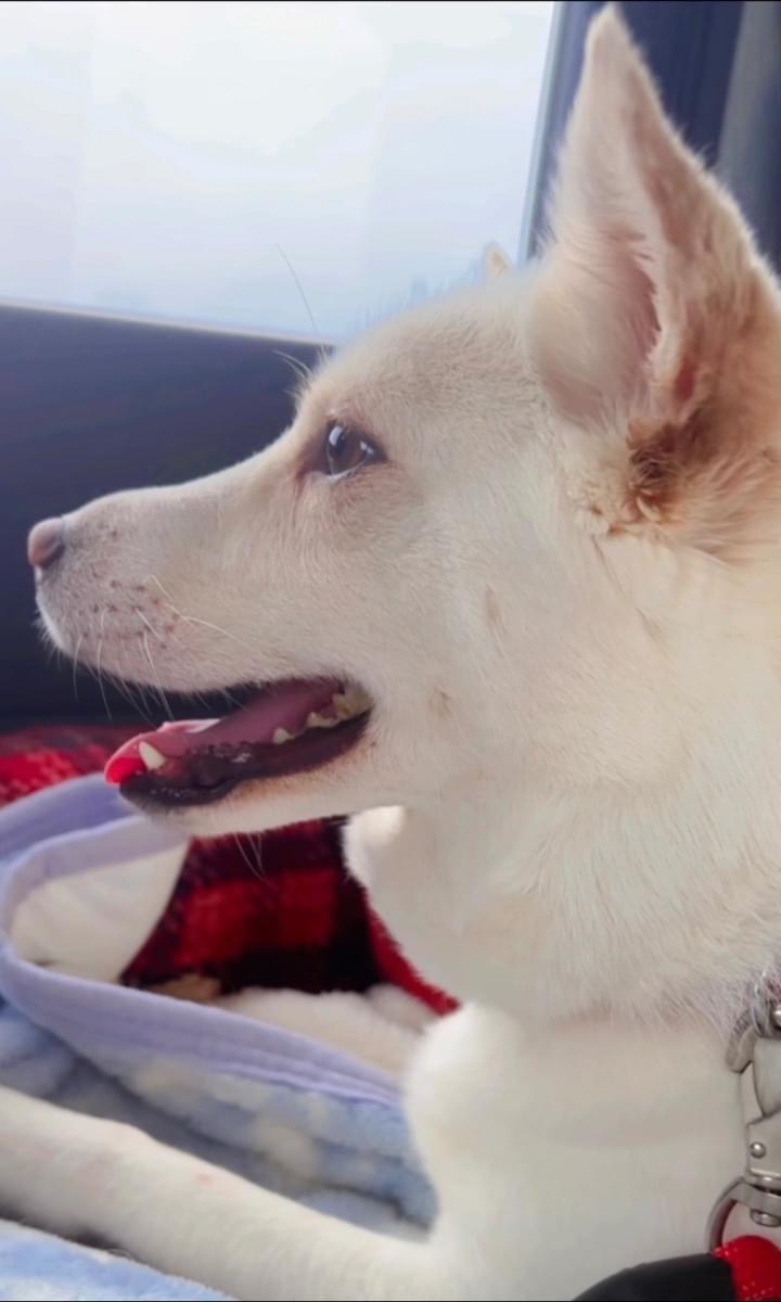 白い中型犬を探しています