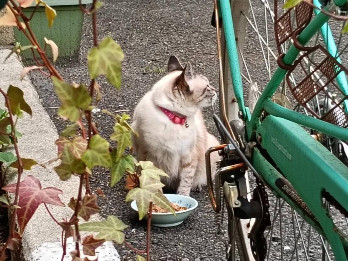 特に痩せほそっている様子はありませんでしたので、放し飼いの子の可能性も否めませんが…交通量の多い道路も近くにあるので、放し飼いだとしたら危険すぎだし、左頬のコブが痛々しくとても心配です。