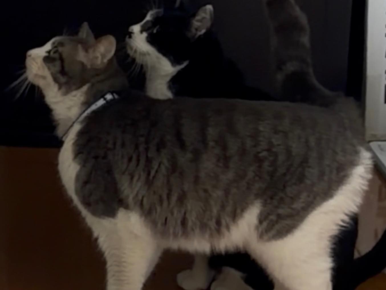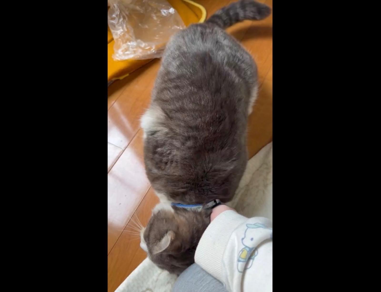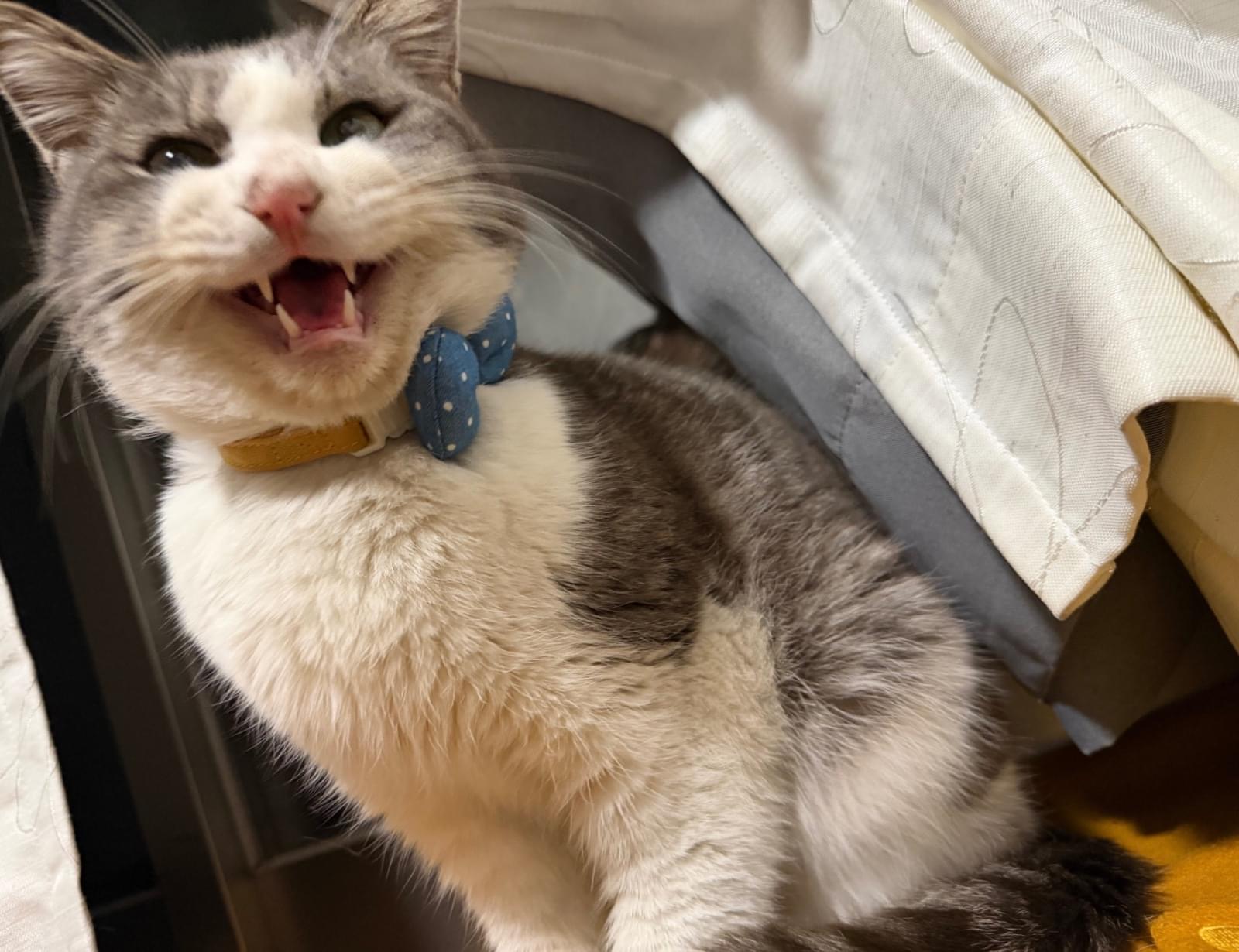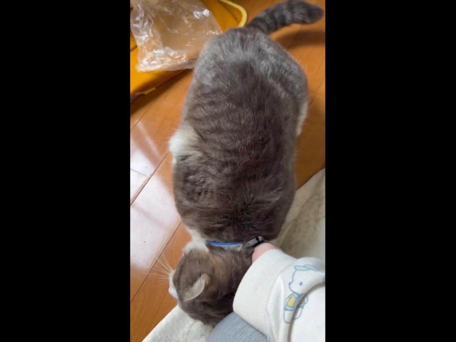 ベージュ輪っかに水色のリボン(水玉)がついている首輪をしていますが とれているかもしれません