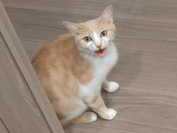 女の子。クリーム色の雑種猫。警戒心低めのいいい子ちゃん。