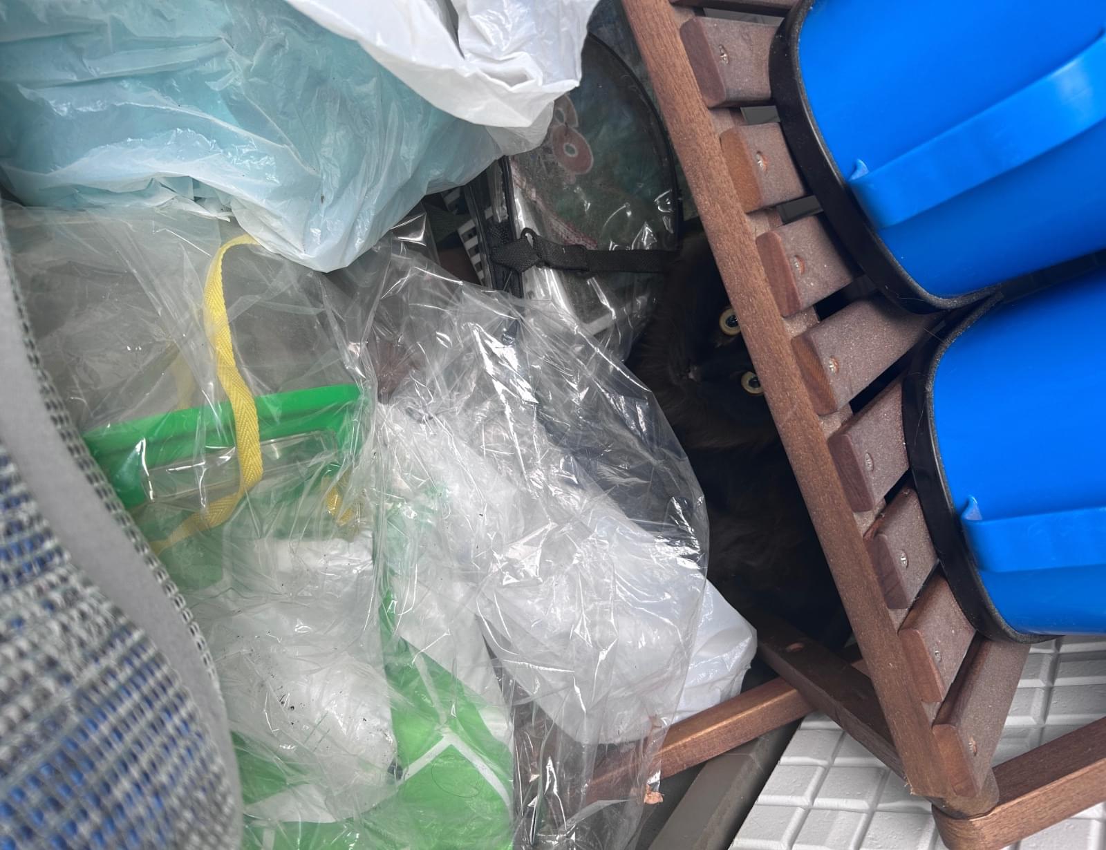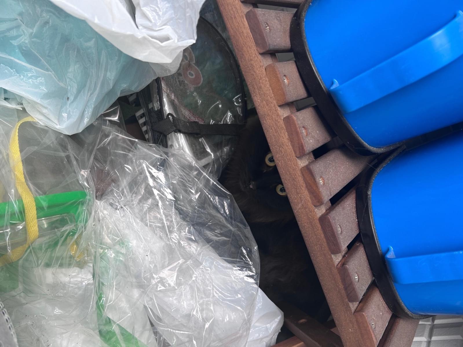 玄関外の物置にいました。