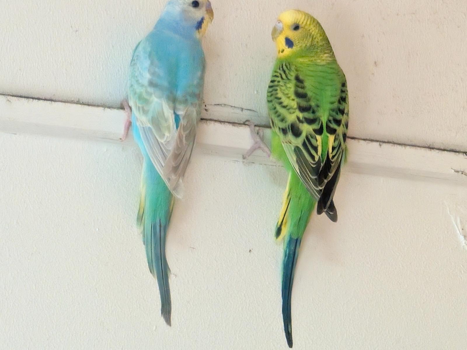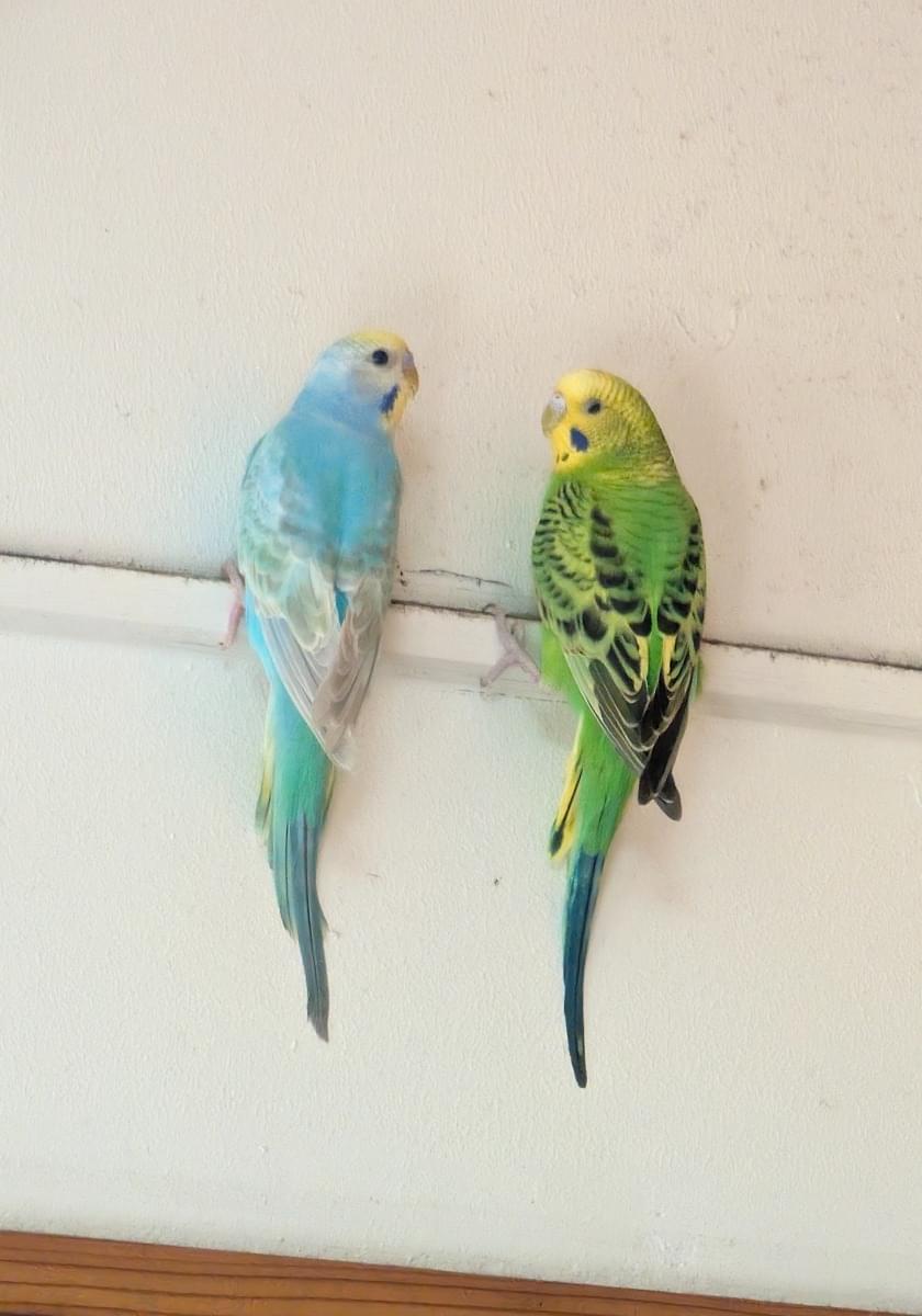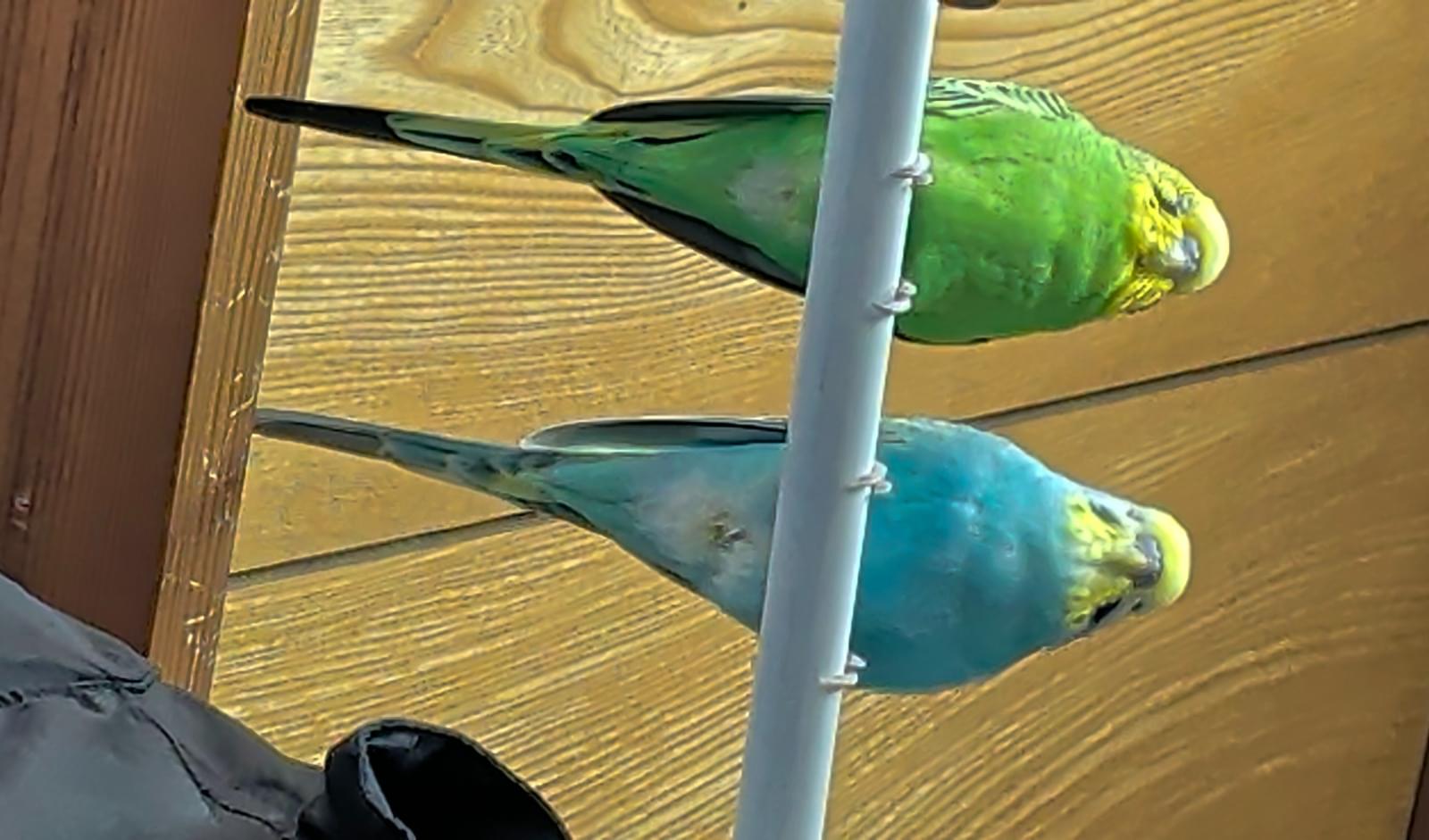 人馴れがほぼしてません。捕まえようとすると逃げます。頭が黄色で、身体が緑色で、尾羽根が青っぽいセキセイインコです。あまり鳴きませんが、鳴き声は高いです。怒りっぽく、低い声でジジジジや甲高い声でピピピピと鳴くこと事が多いです。