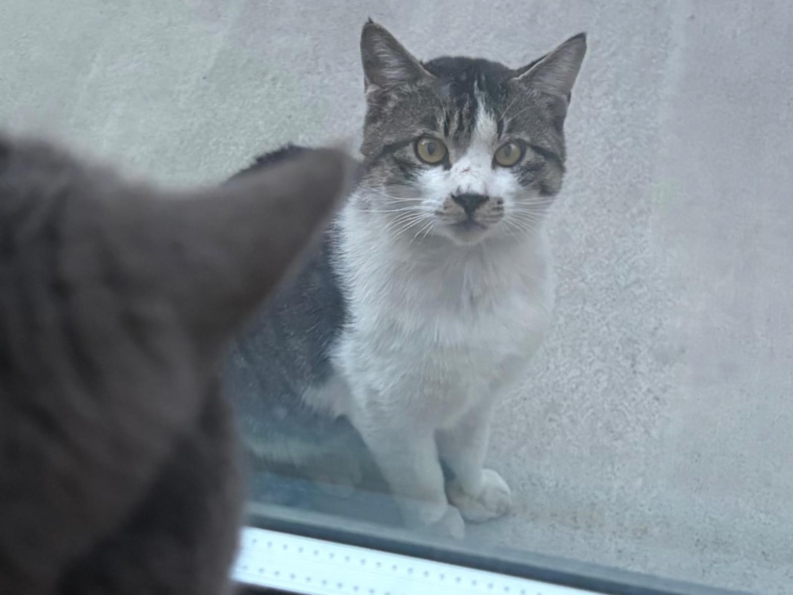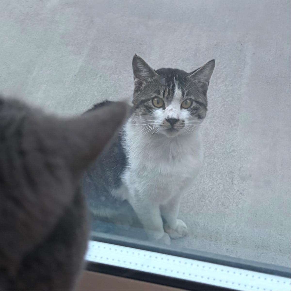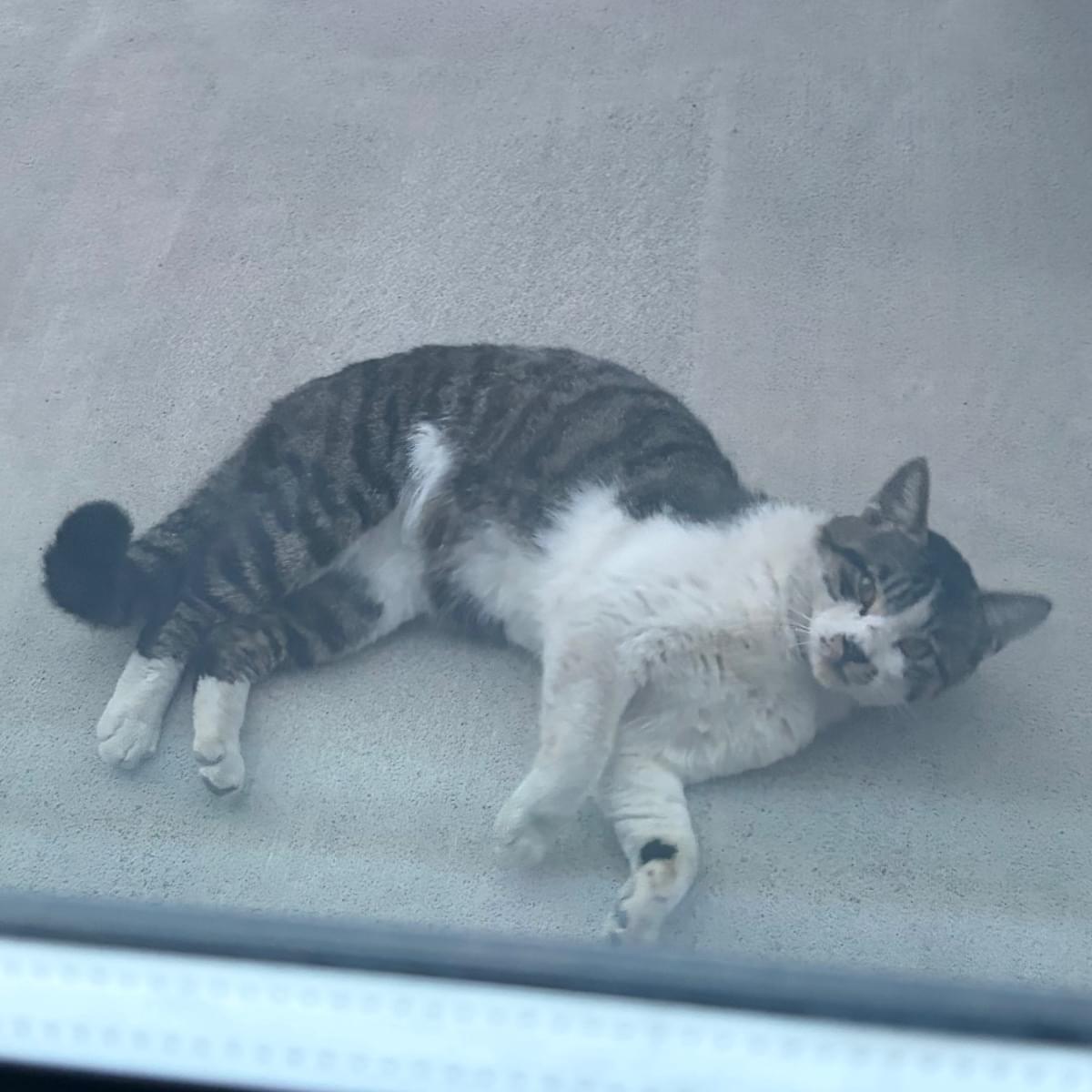 外に出る前にどこかへ行ってしまいましたが窓越しにゴロンとしたので人懐こそうに見えました。