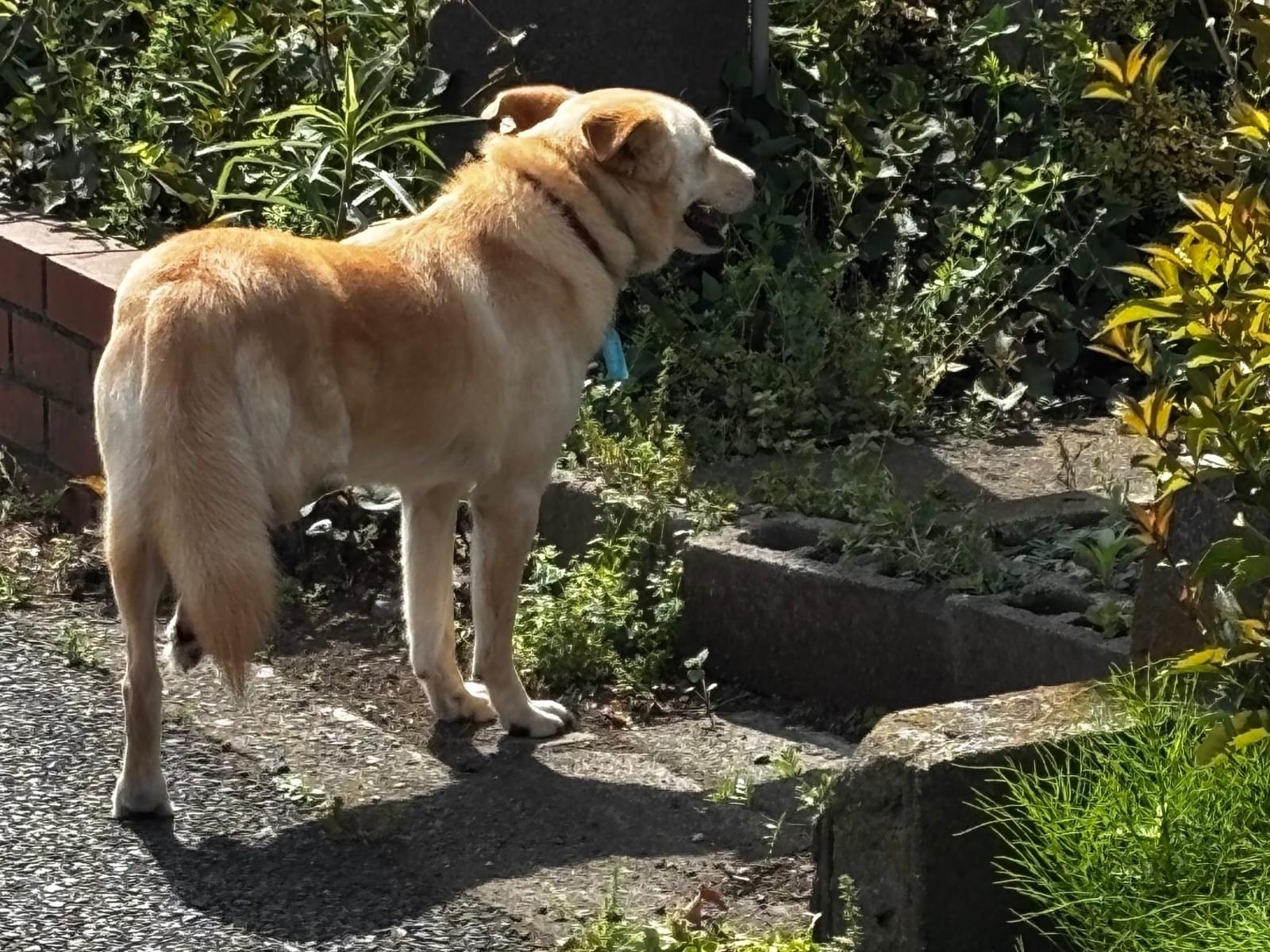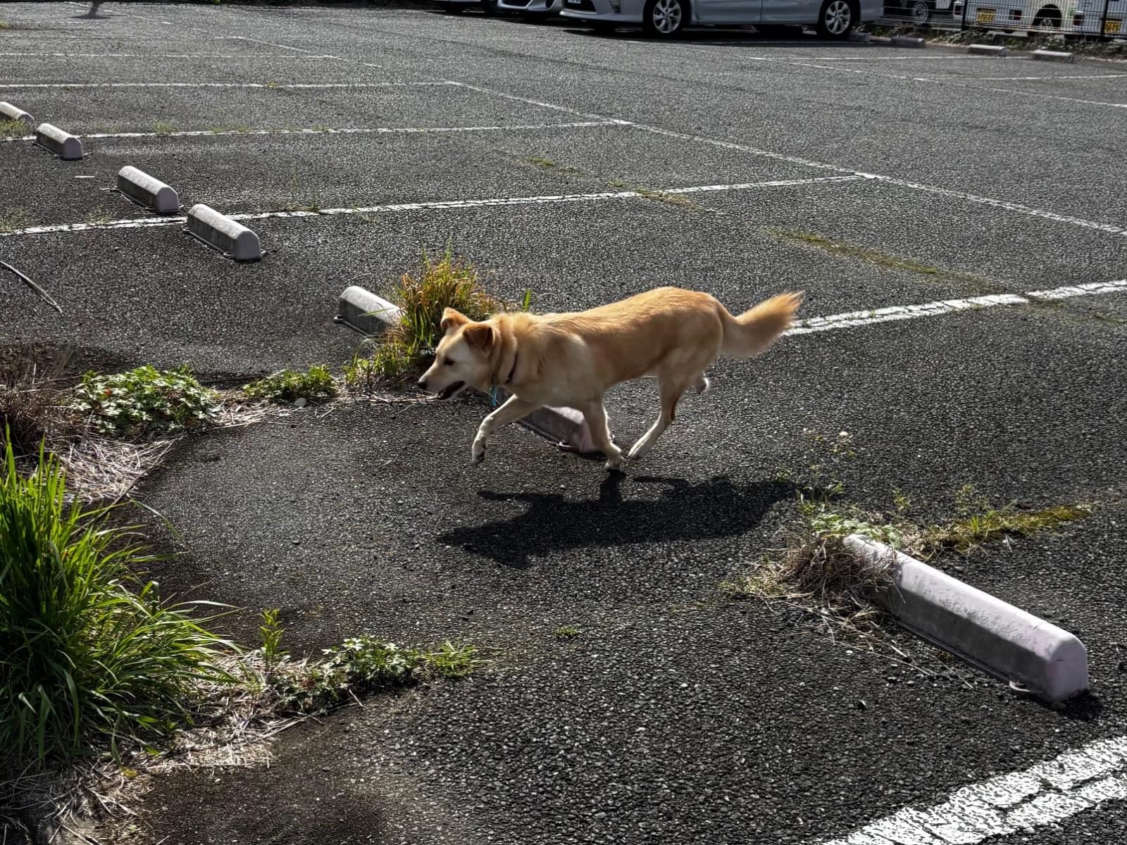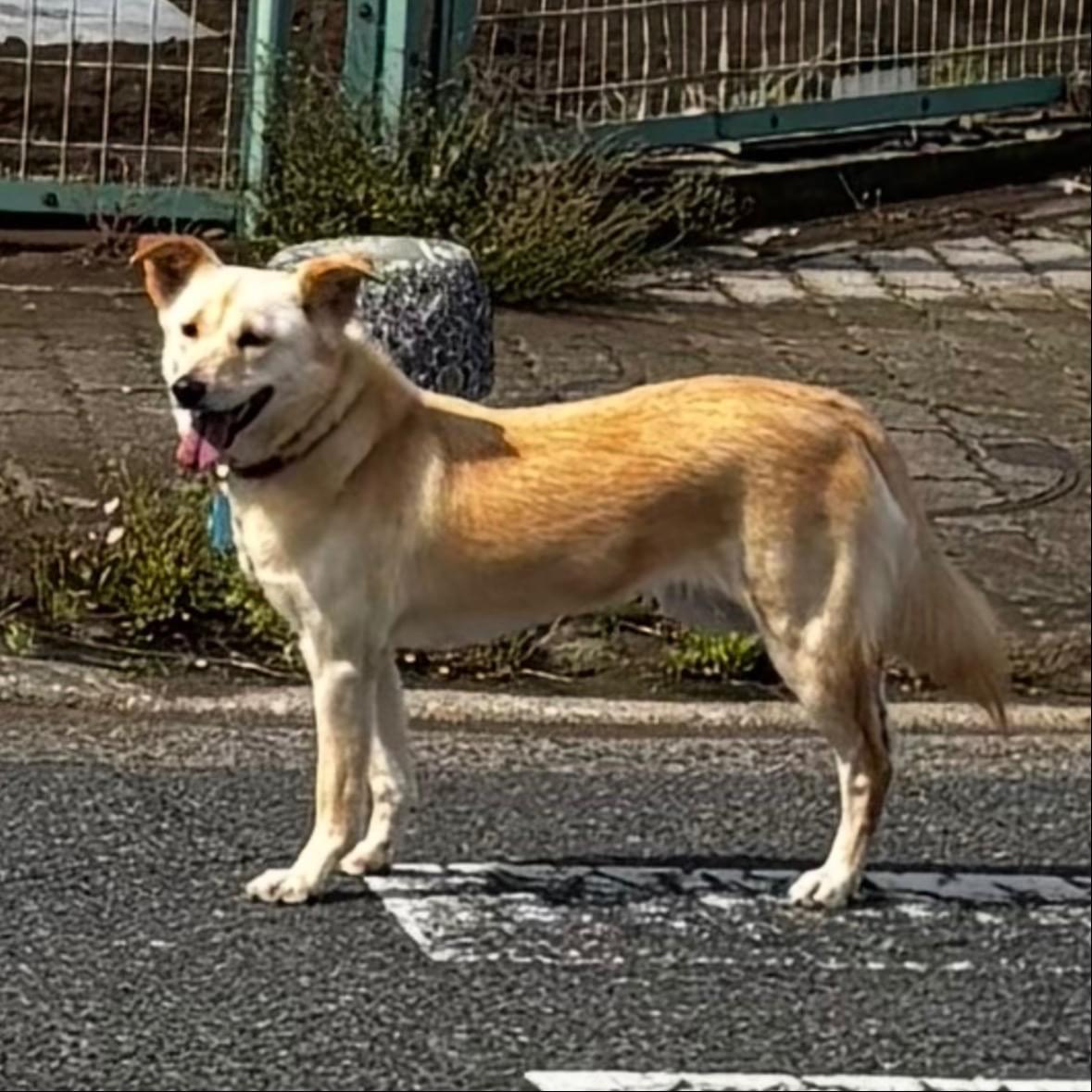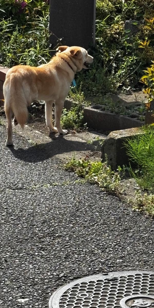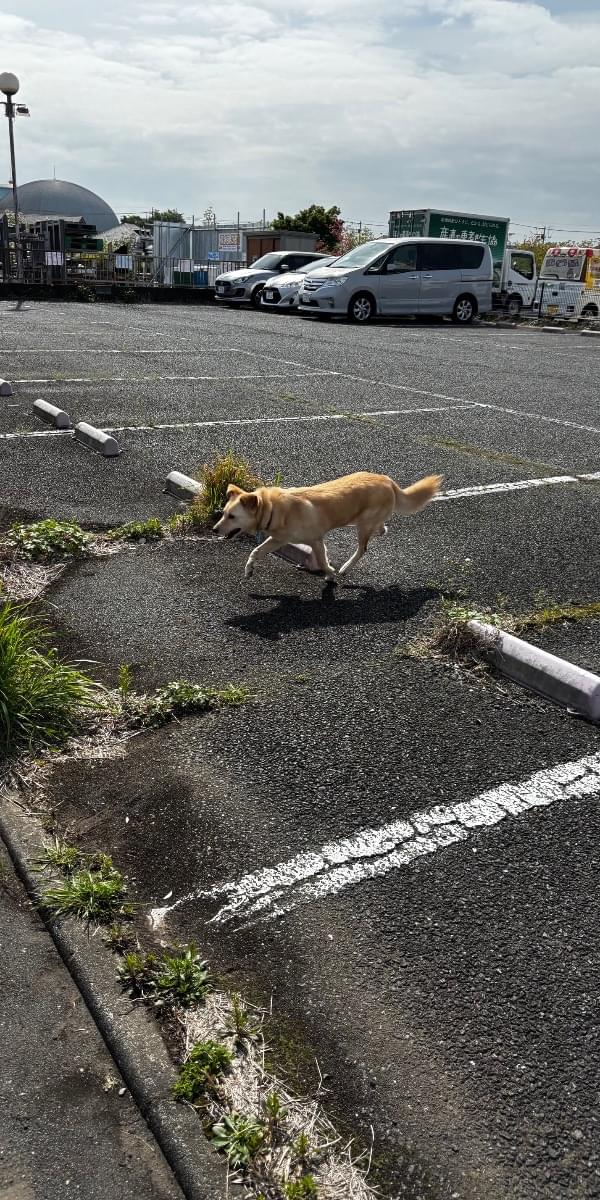 首輪をしていて飼い犬のようですが近づくと逃げてしまいます。警察には通報済みです。