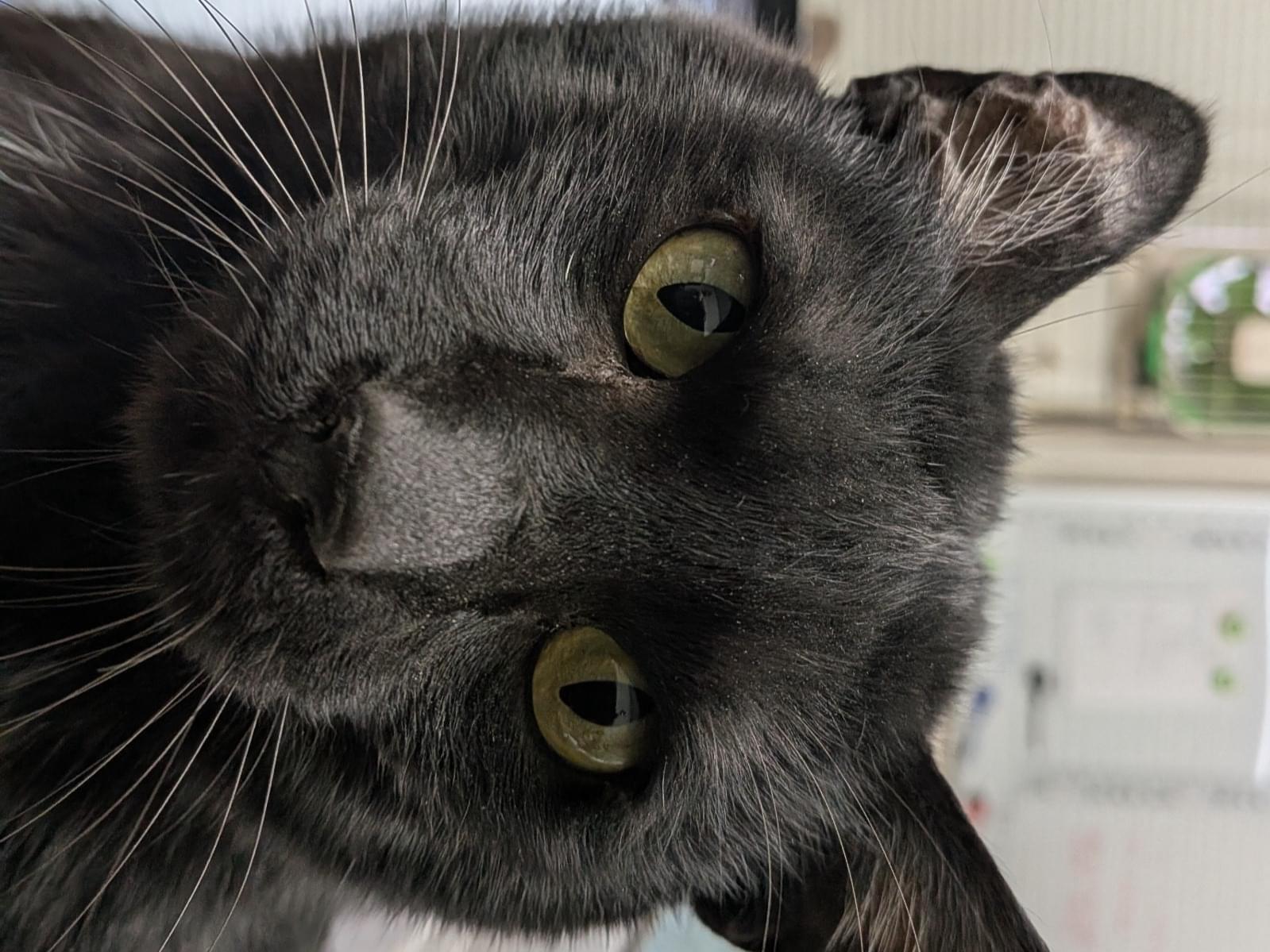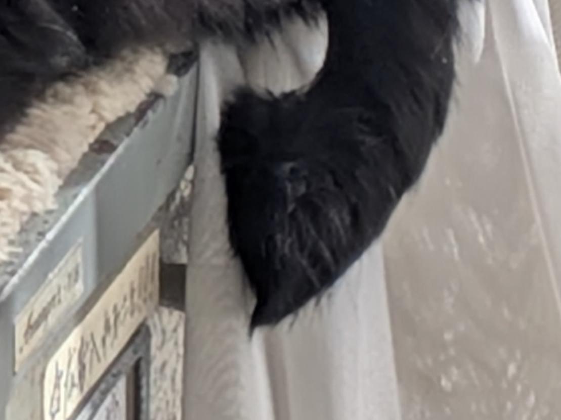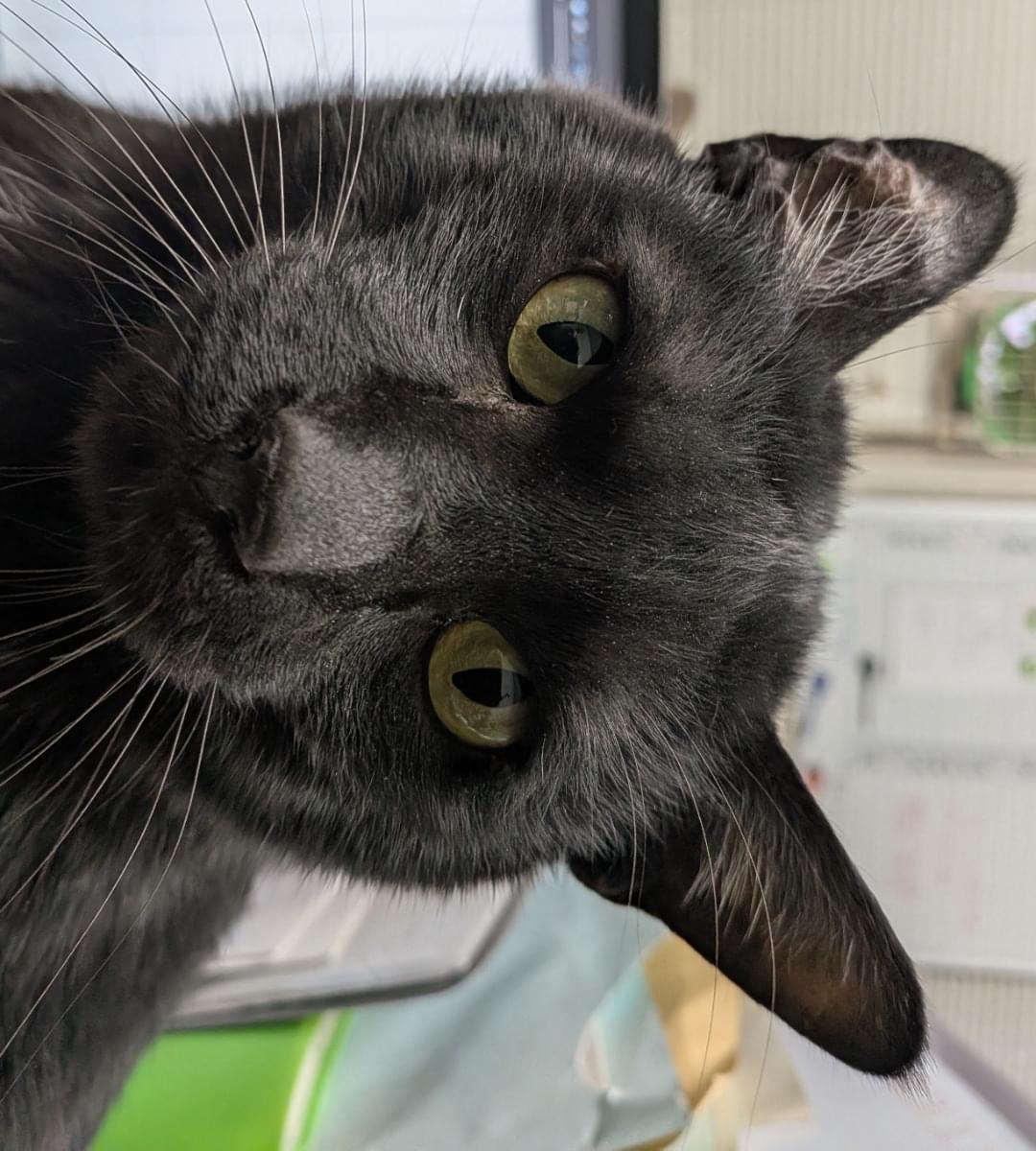 シッポの先端が潰れた様な鍵シッポをしています。お腹は白毛で十字模様になっています。去勢はしていますが、桜カットはしていません。首輪はしていません。3年ほど前に自宅前で弱っていたところを保護した黒猫です。脱走には注意していたのですが、朝玄関を開けると同時に外に飛び出してしまいました。元気にしているのか、とても心配しております。