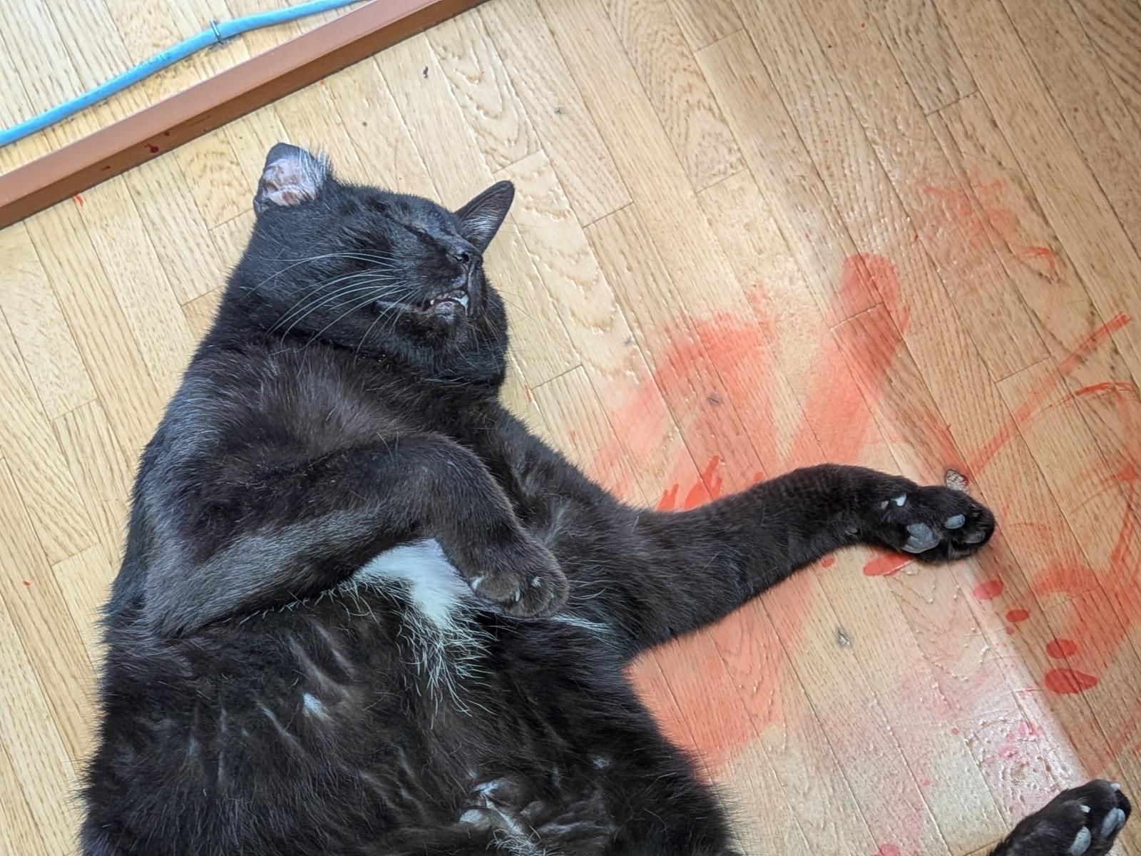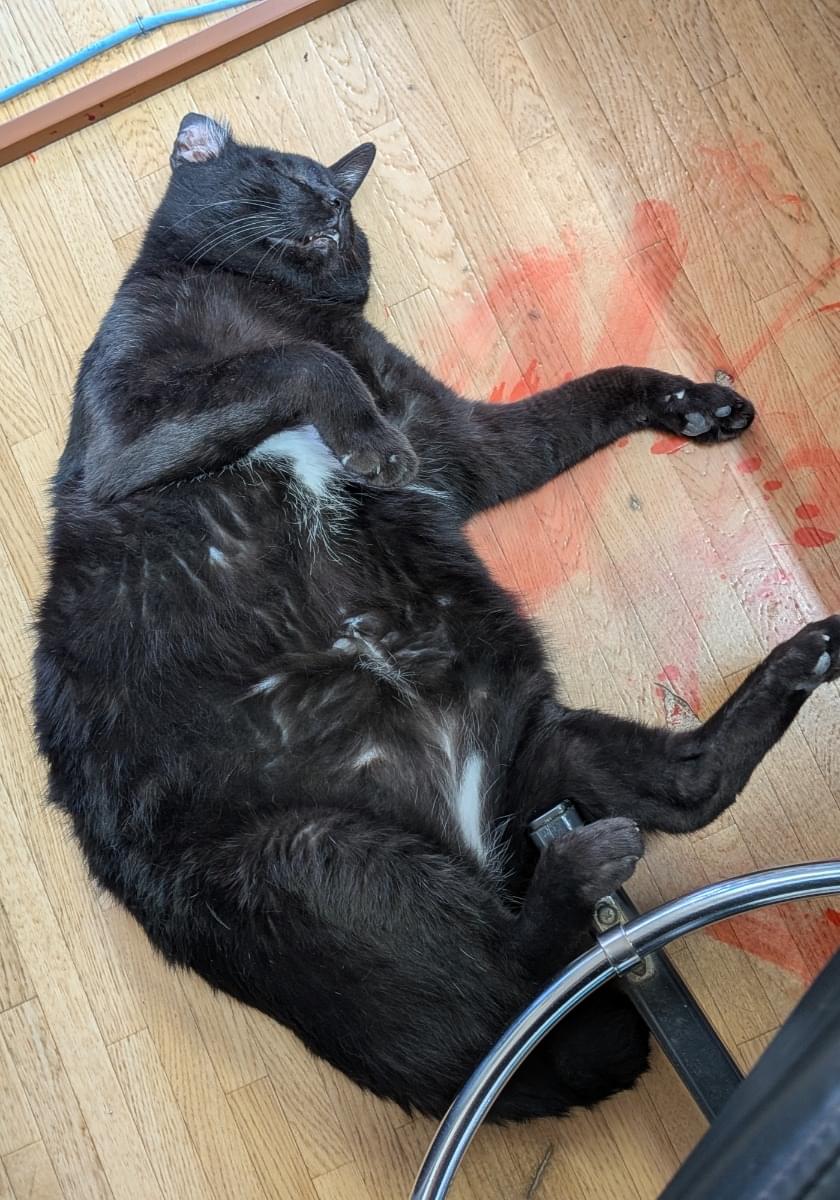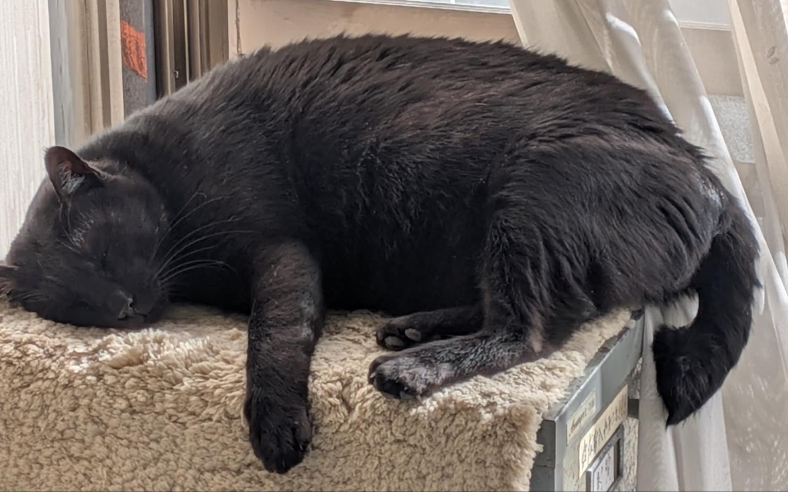 シッポの先端が潰れた様な鍵シッポをしています。お腹は白毛で十字模様になっています。去勢はしていますが、桜カットはしていません。首輪はしていません。3年ほど前に自宅前で弱っていたところを保護した黒猫です。脱走には注意していたのですが、朝玄関を開けると同時に外に飛び出してしまいました。元気にしているのか、とても心配しております。