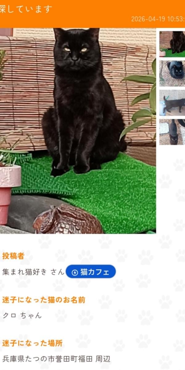 毎日その場所からは3月30日までは帰って来ていましたが、3月31日からは行方不明になっています。