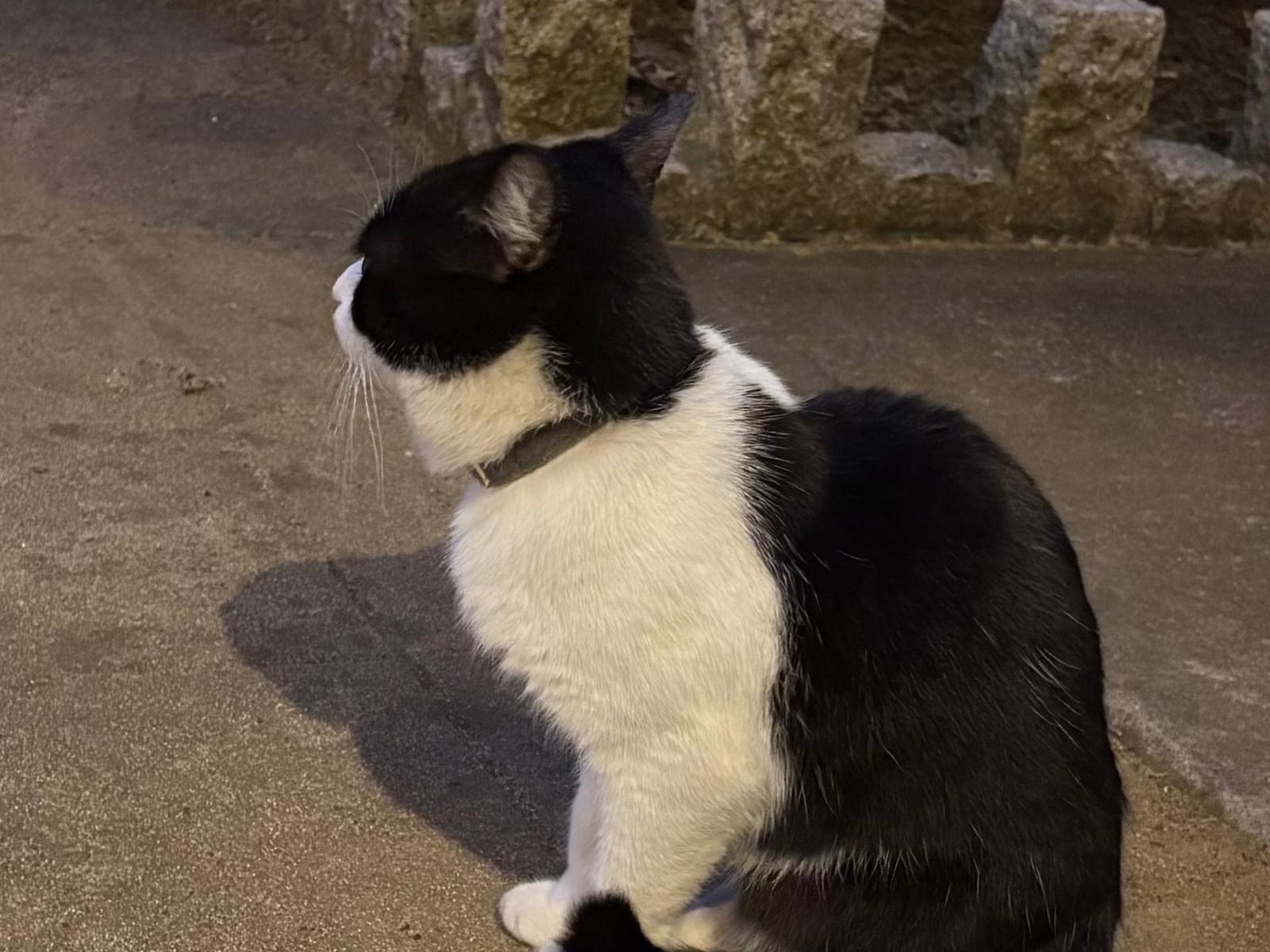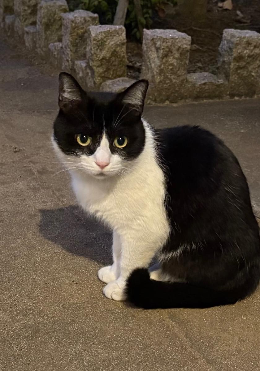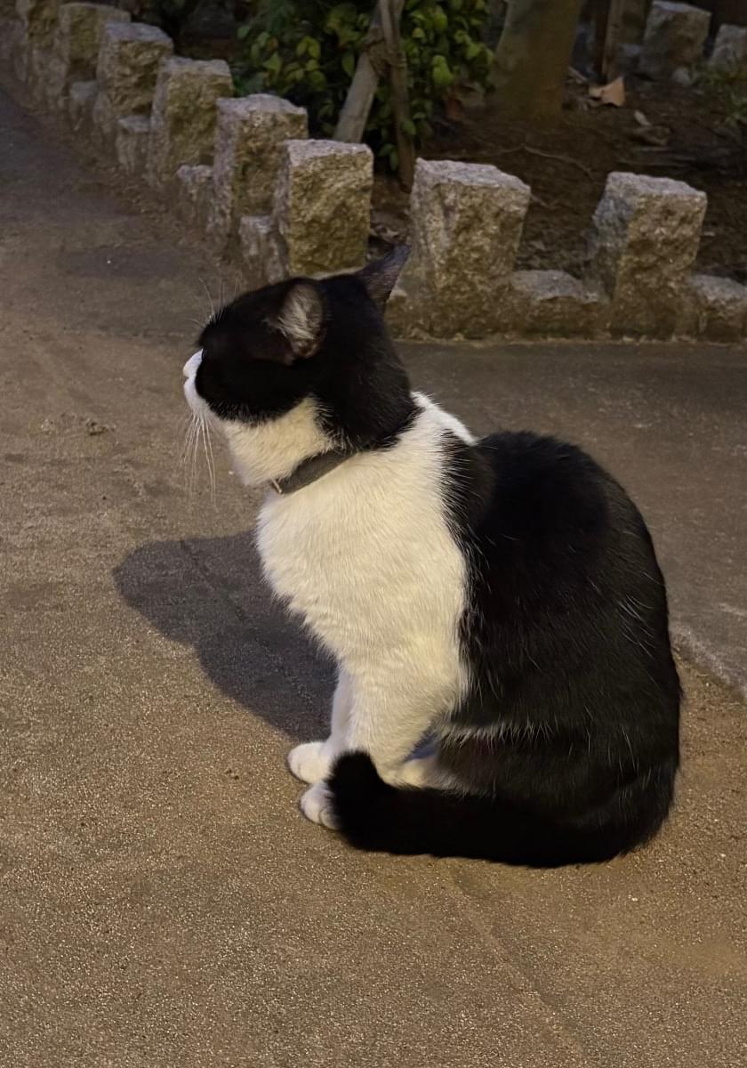 首輪の色は夜のため詳しく確認できていませんが、暖色ではなく暗めの色でした(カーキっぽいような、デニムっぽいような)