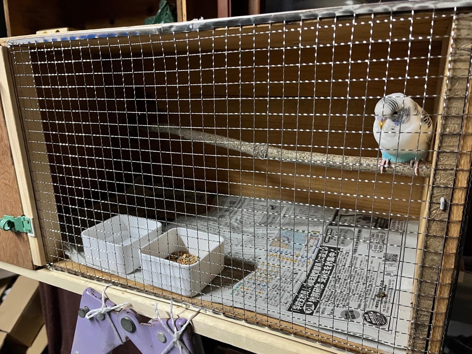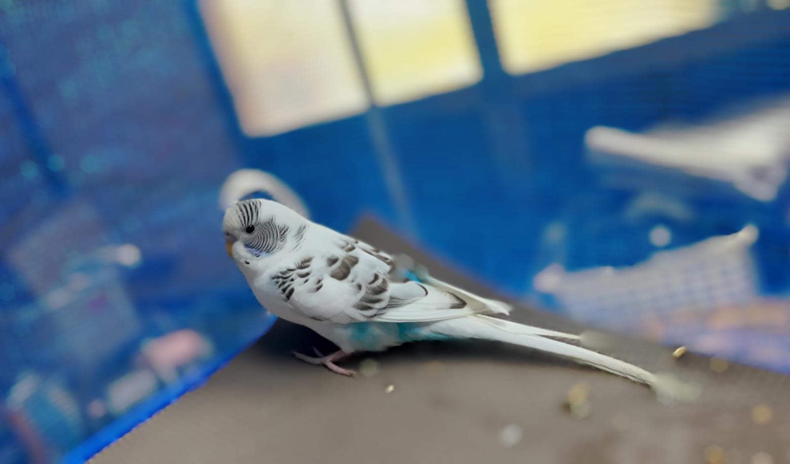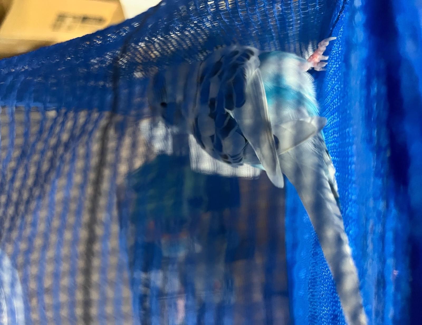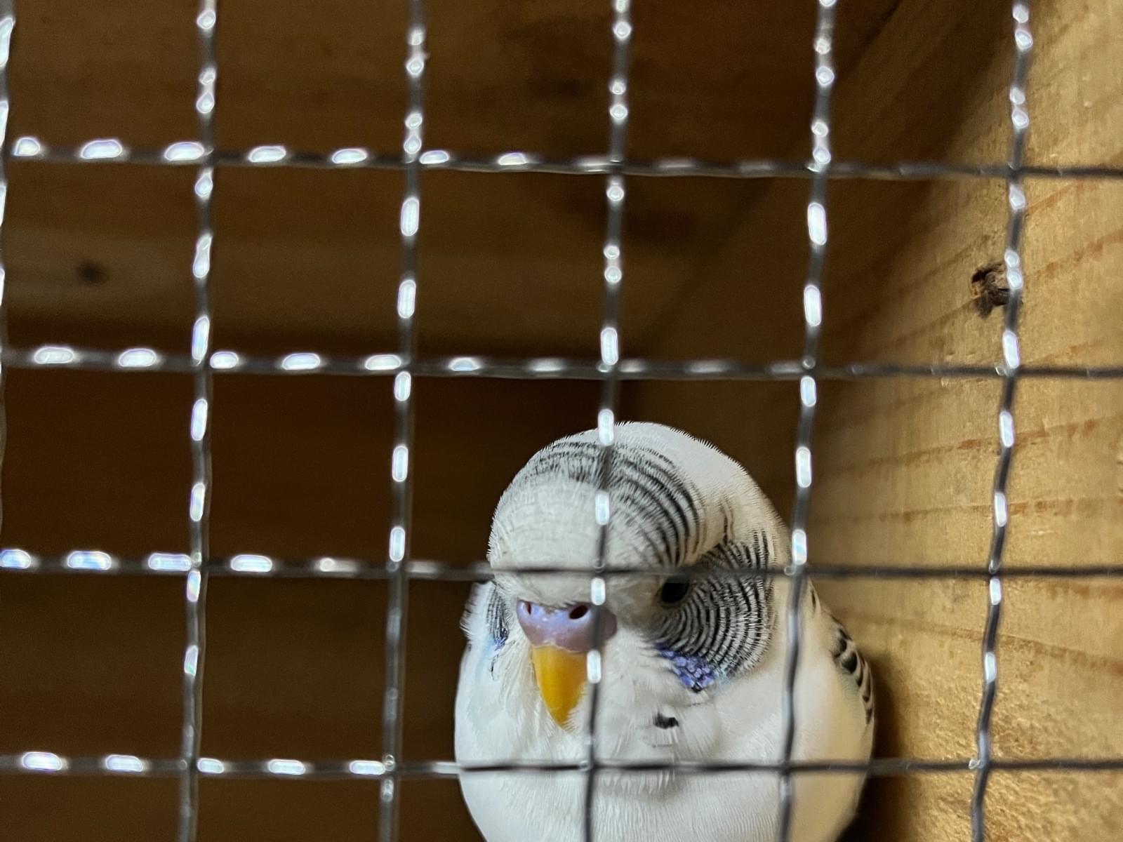 セキセイインコ、白基調、お腹と背中に薄い水色