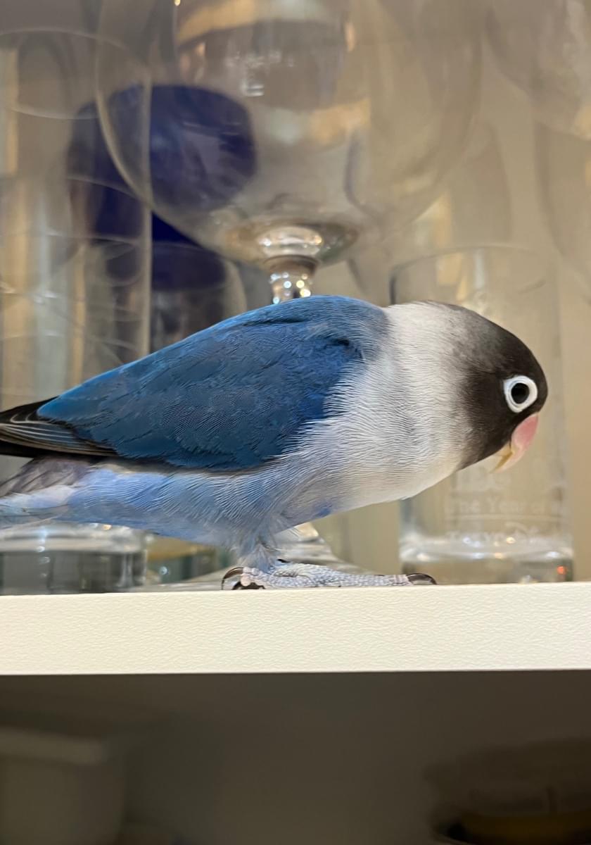 体長10cm前後のブルーボタンインコです。スイちゃんと呼んだら高確率で返事をします。くしゃみをする真似しても鳴きます。人慣れしていて手乗りです。クリッピングしていなかったので長距離を飛んでしまいます。もし、保護していただいた方がいらっしゃいましたら、ぜひご連絡をお願いします。大磯警察にも届け出をしていますので、そちらへの連絡でも大丈夫です。
