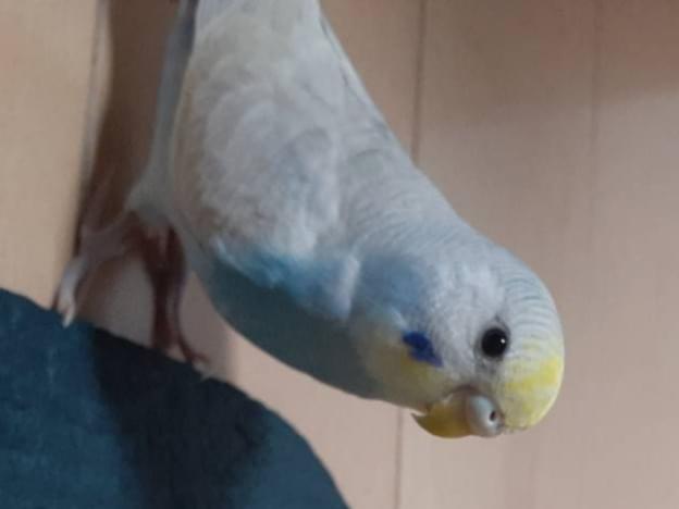 特徴はお腹が水色で頭から羽がグレー、くちばしの上辺りが黄色です。
