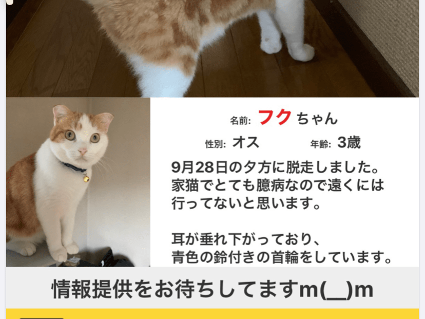 付近を探しましたが、呼び方にも応じず見つかりませんでした。