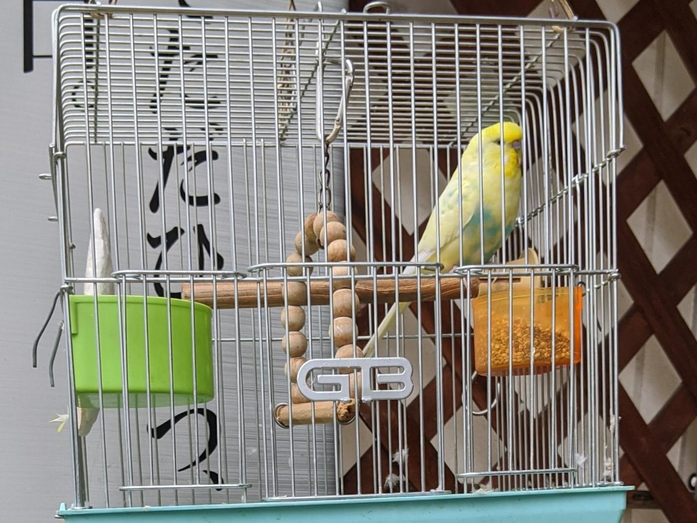 近所の喫茶店でセキセイインコが保護されています