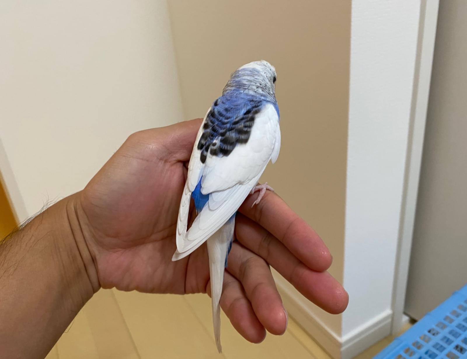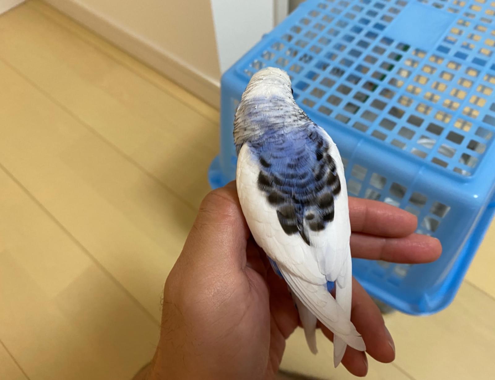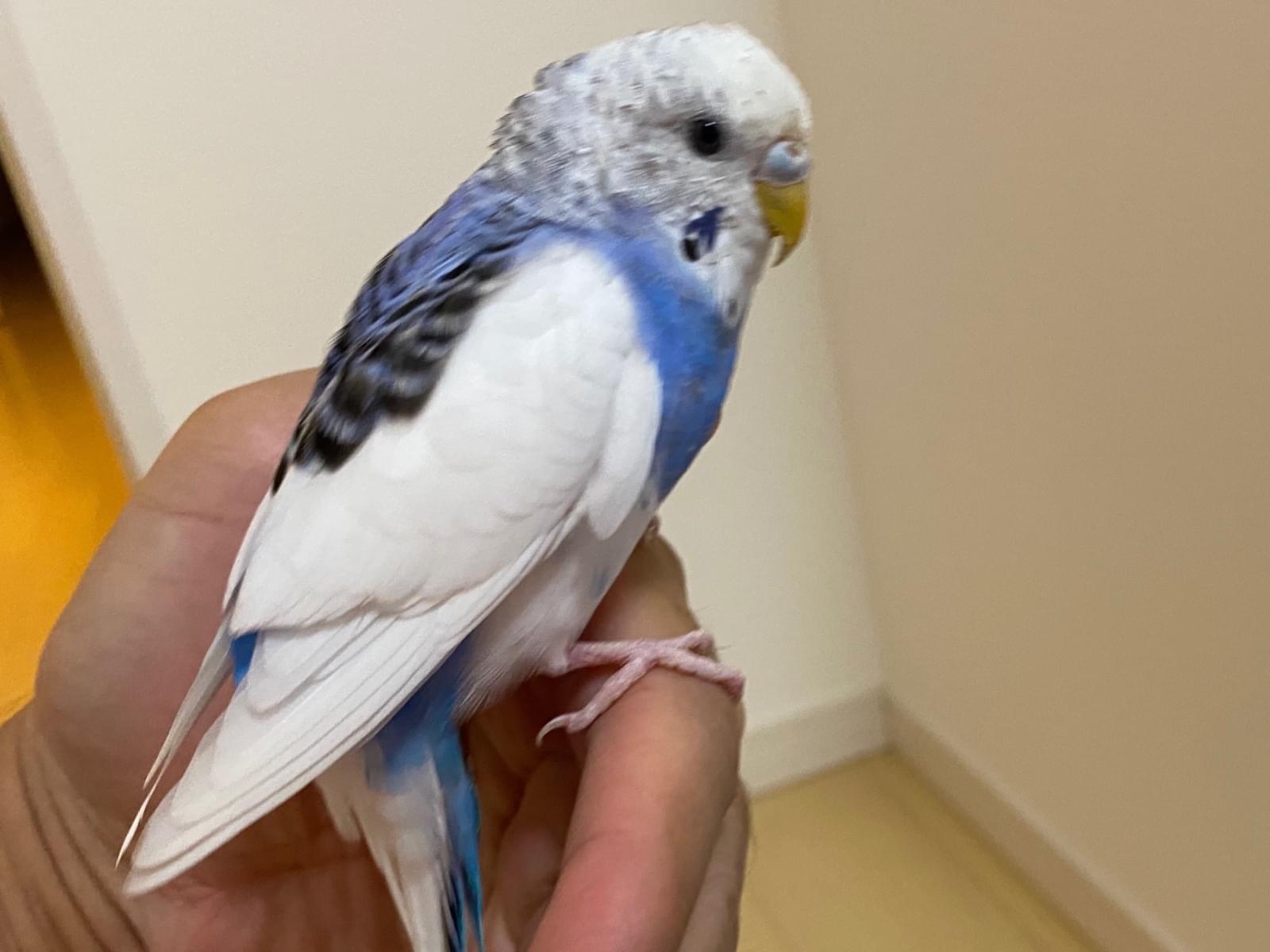 道路に飛ばないでじっとしていました。車が危なかったので、手に乗せると、手のりが慣れていました。少しだけ飛べます。大人しいです。白基調。
