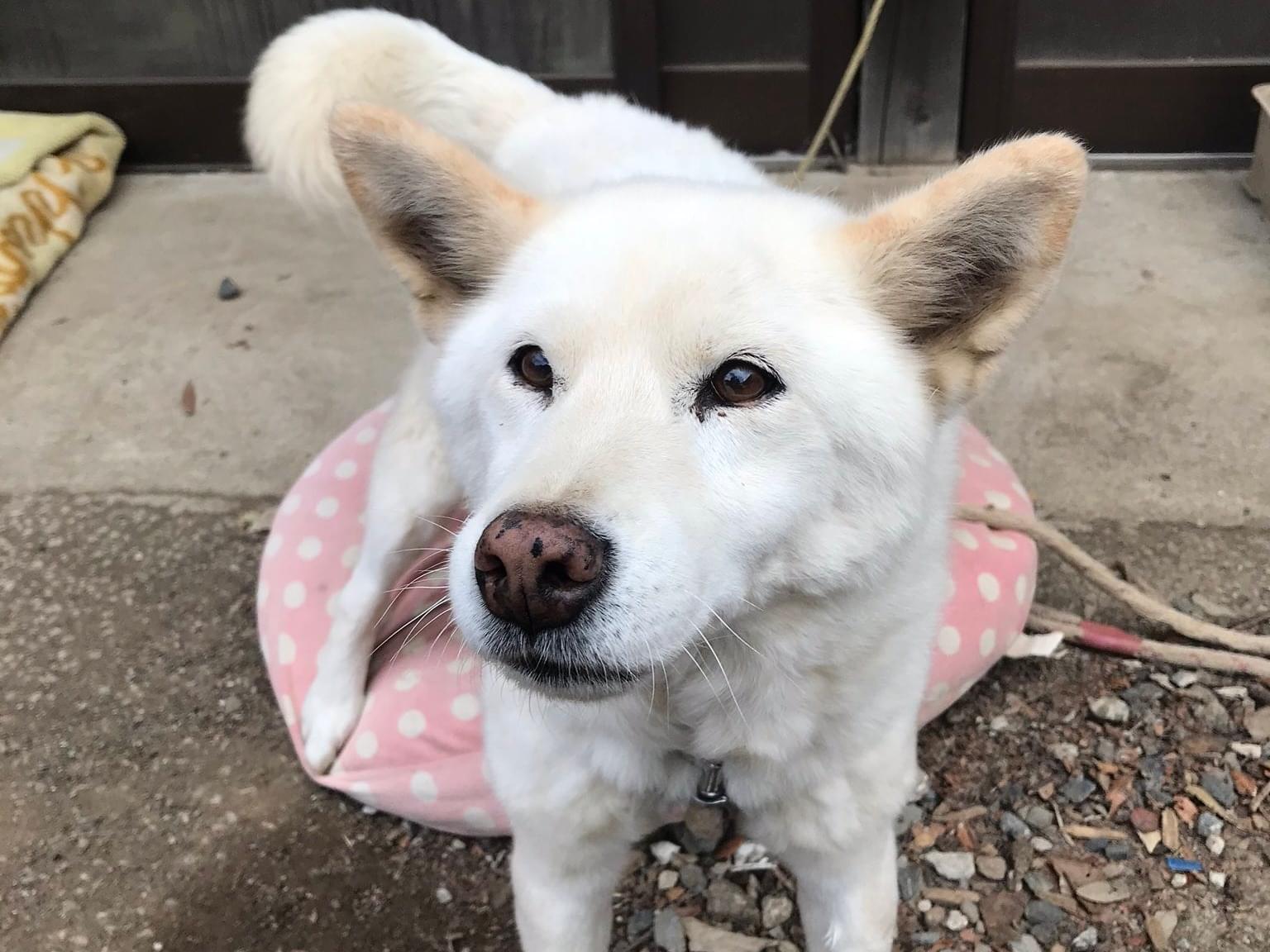 赤い首輪の白い犬を探してます