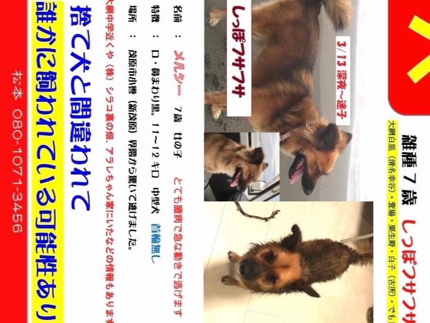 似た犬で♂が古所(スーパーハヤシ 白子近く)で目撃されます。