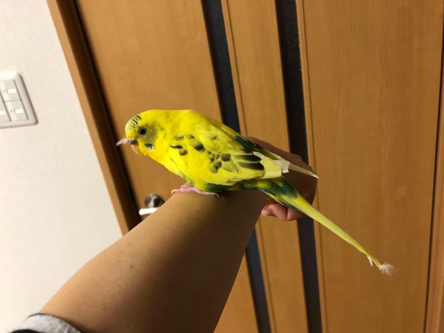 体は黄色、お腹は緑、黒い斑点があるセキセイインコです。人懐っこい性格ですが人に触られる、撫でられることを嫌います。小柄で甲高い声で鳴きます。家のドアが開いた拍子に逃げ出してしまいました。