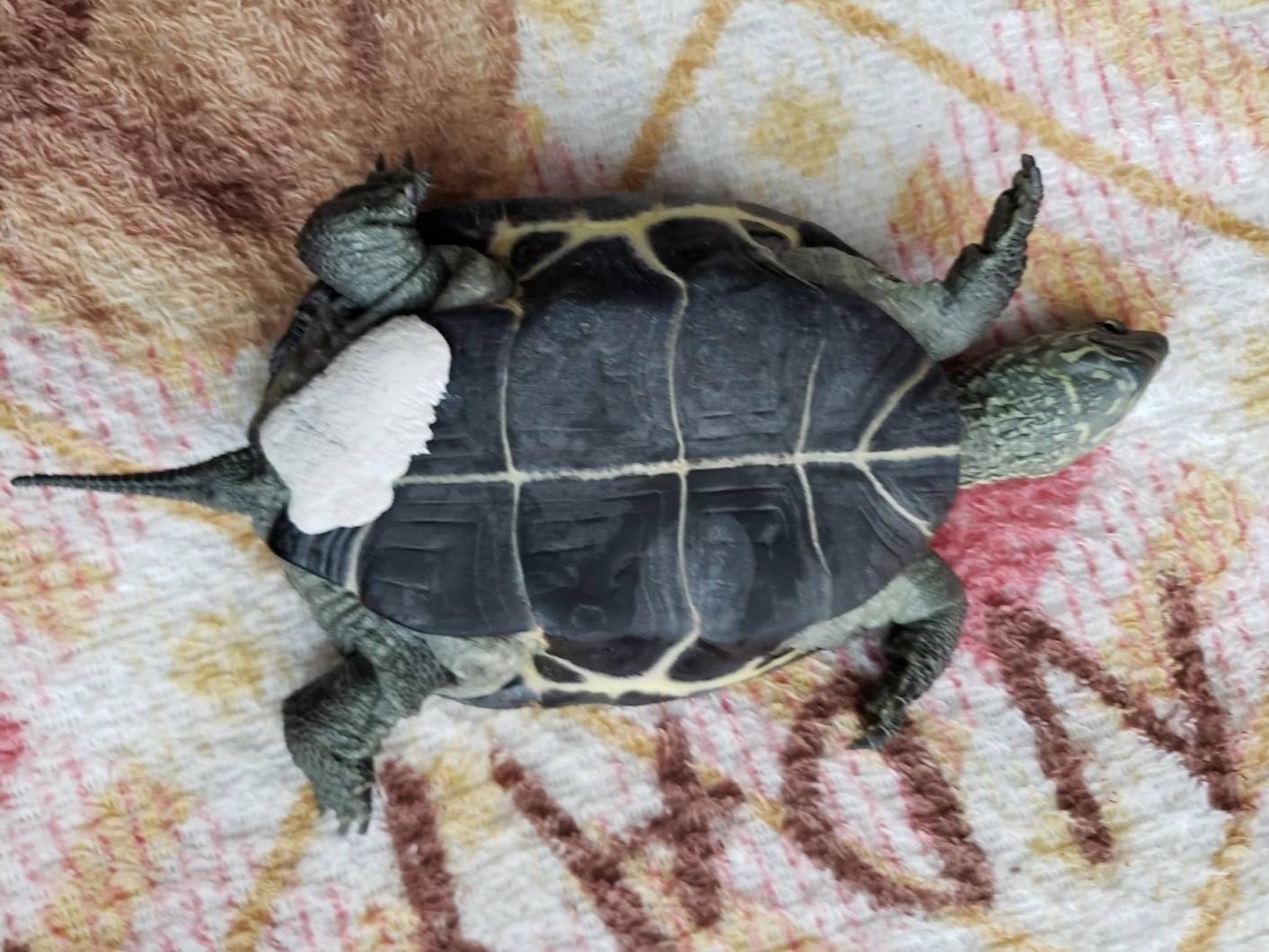 1歳のクサガメでお腹の甲羅に白いギブスをしています。治療中です早く見つけてあげたいです。