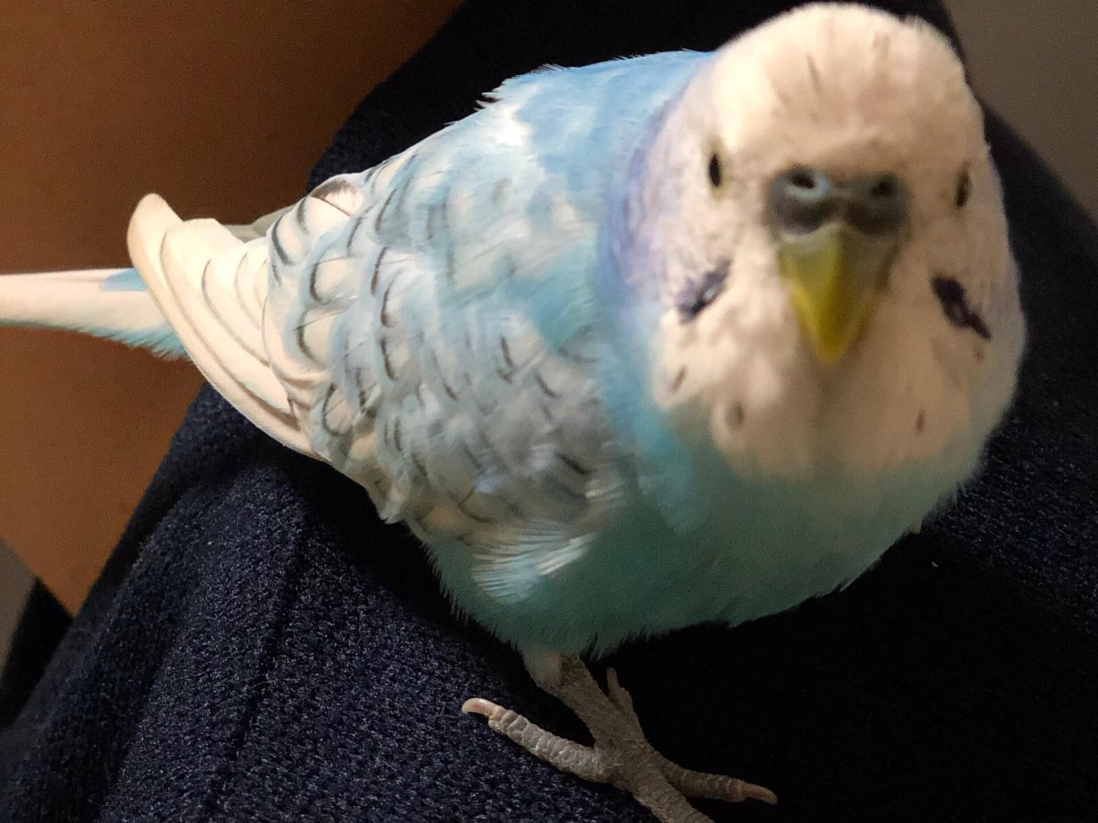 ゴルフ場に迷い込んできたセキセイインコを保護しています。