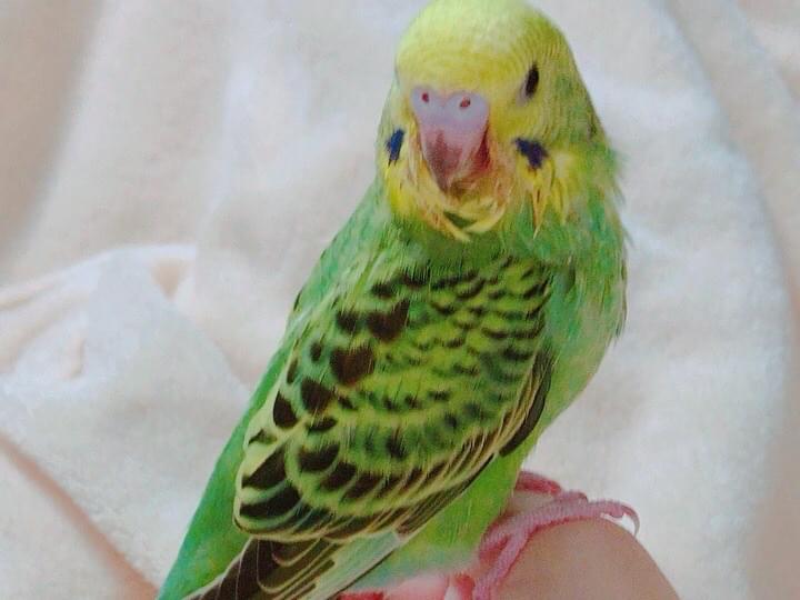 緑と黄色のオパーリンのセキセイインコを探しています。手乗りでとても人懐っこい子です。
