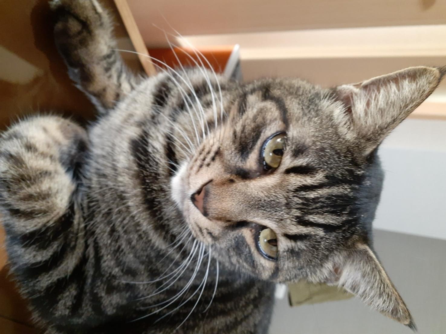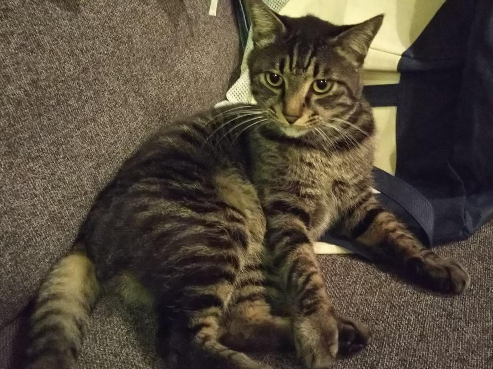 5㎏程の大きさ。 細身で背中が黒い。 運動神経がよい。 名札・首輪なし。
