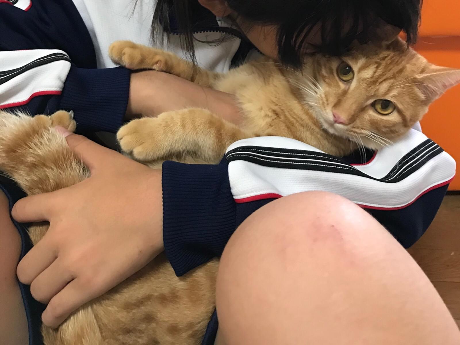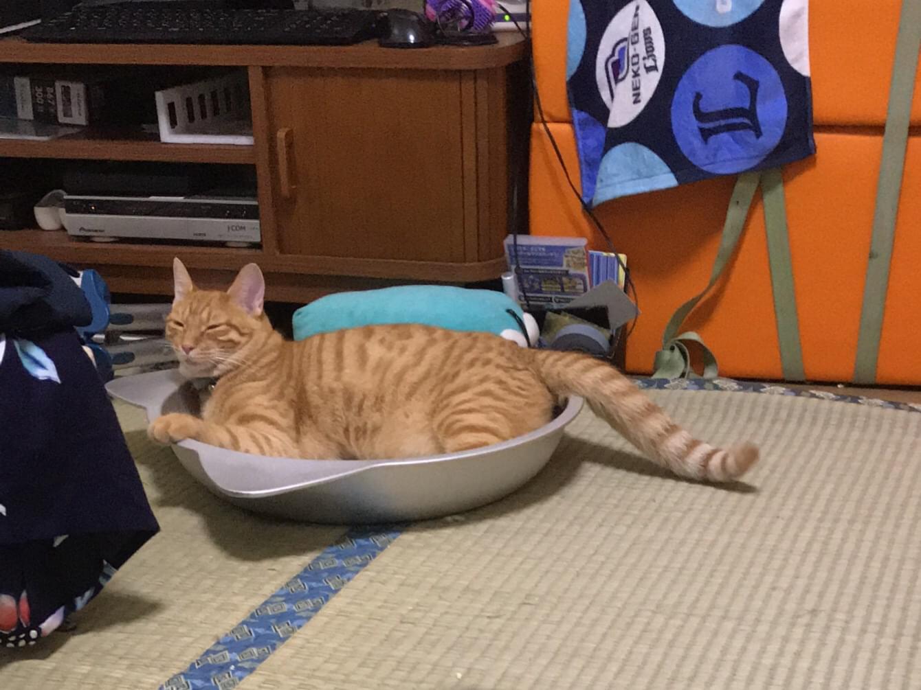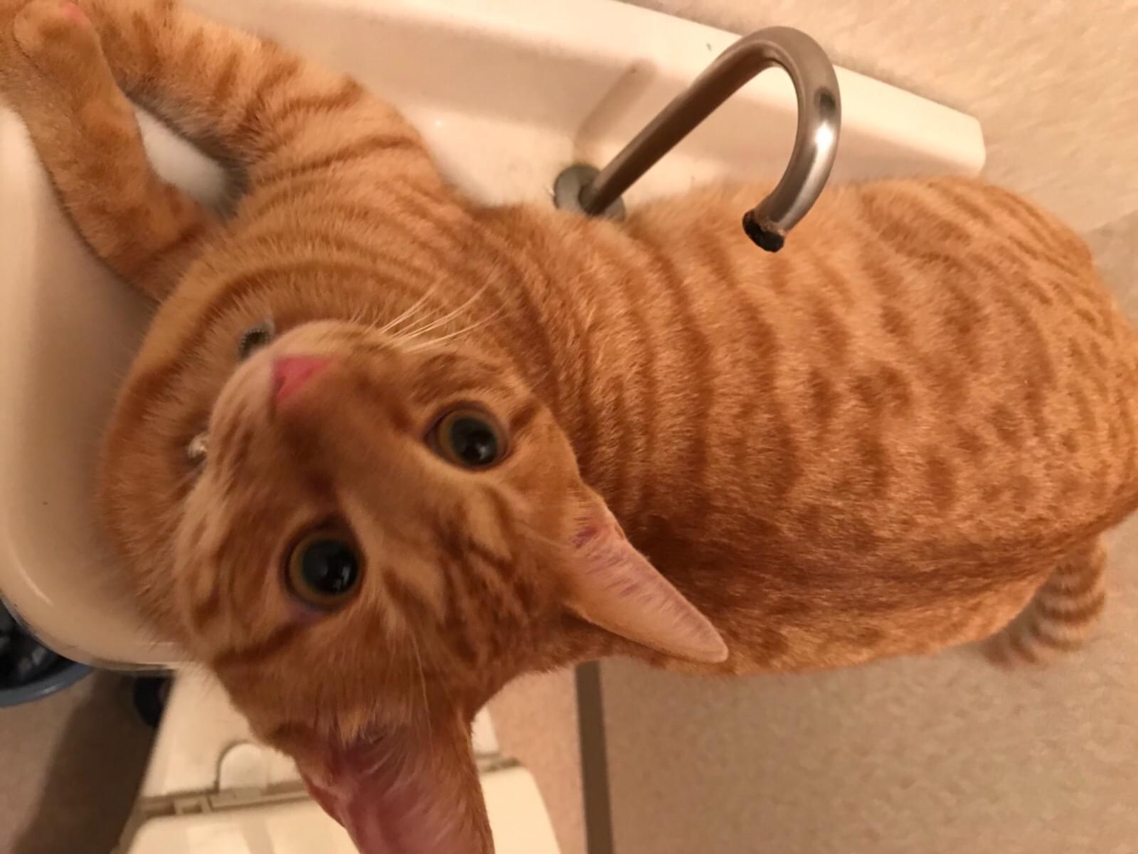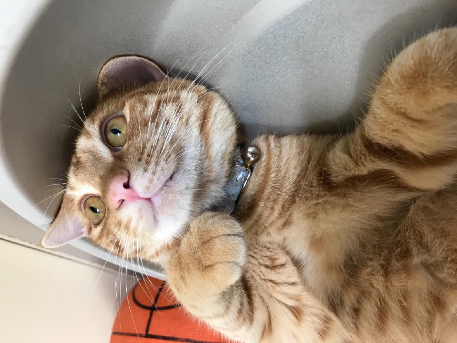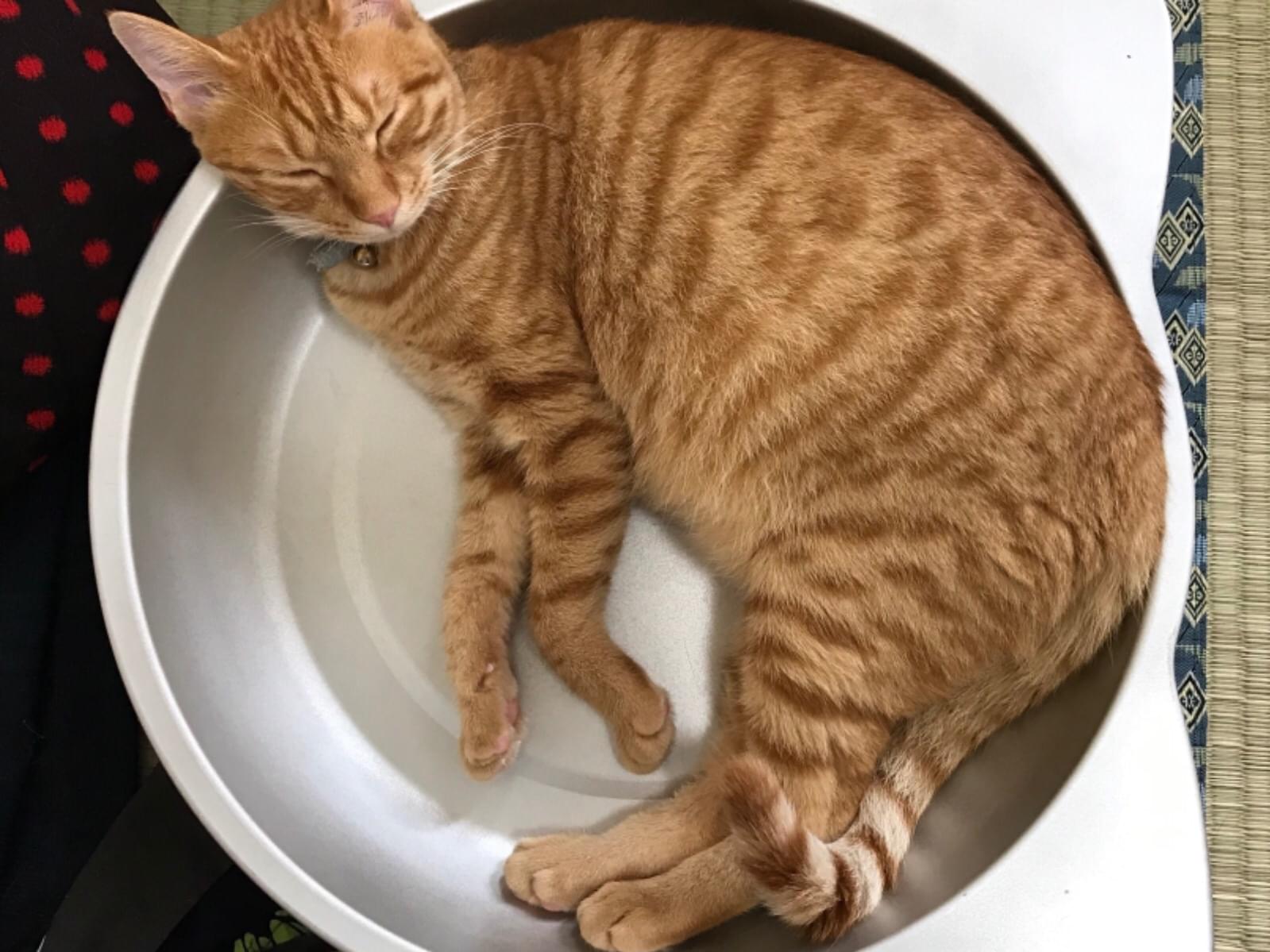猫の柄は全体的にはっきりしていて、おでこにMマーク、目の横のアイラインもしっかり、しっぽはまっすぐ長く、濃い縞模様。去勢済みですが耳カットはしていません。